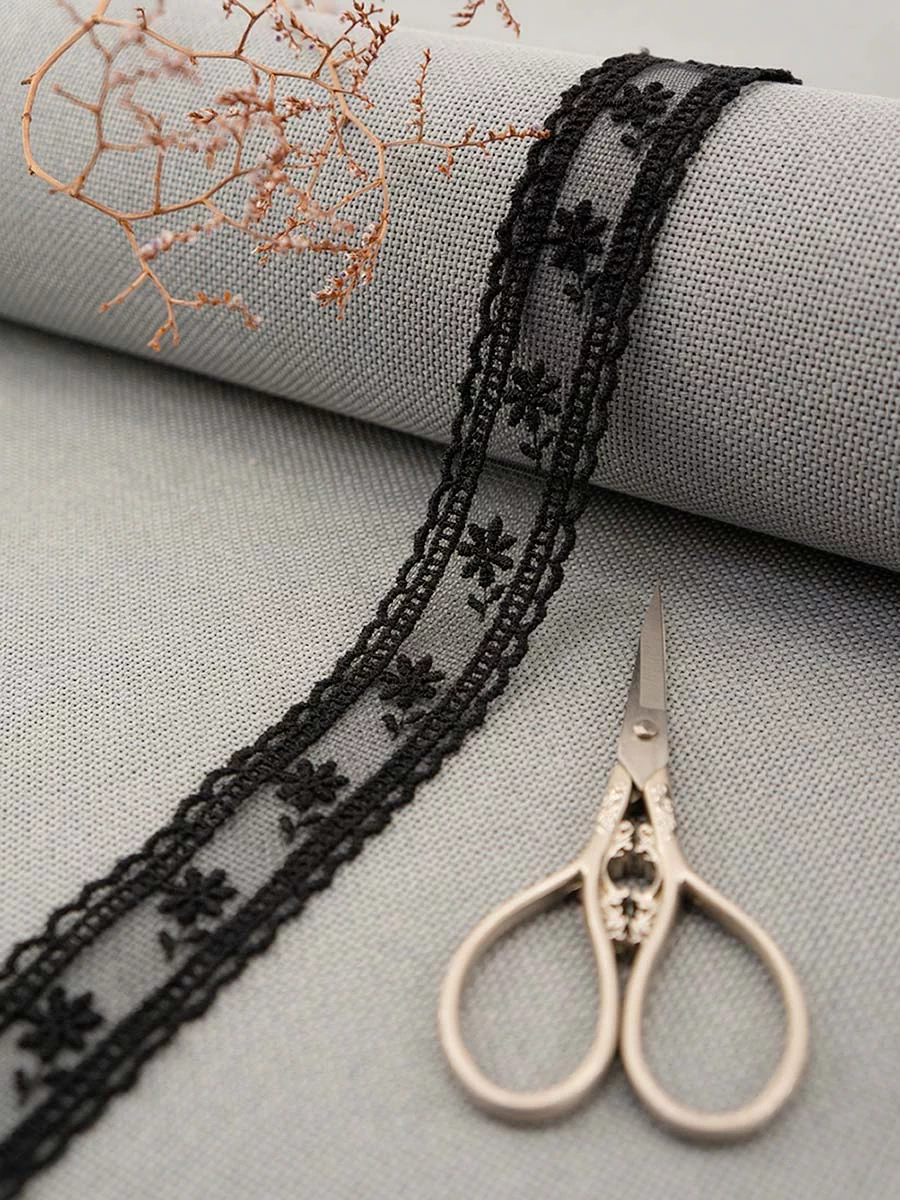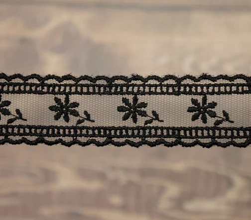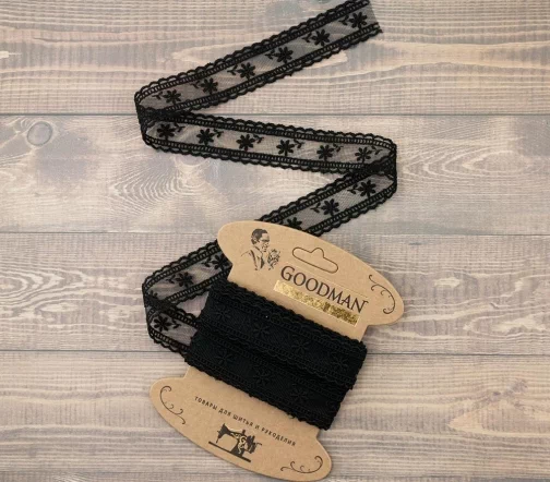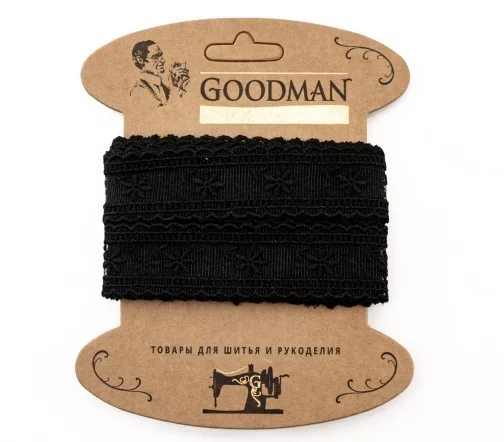Кружево вышивка на тюле GOODMAN, ширина 30 мм, уп./4,5 м, цвет черный
