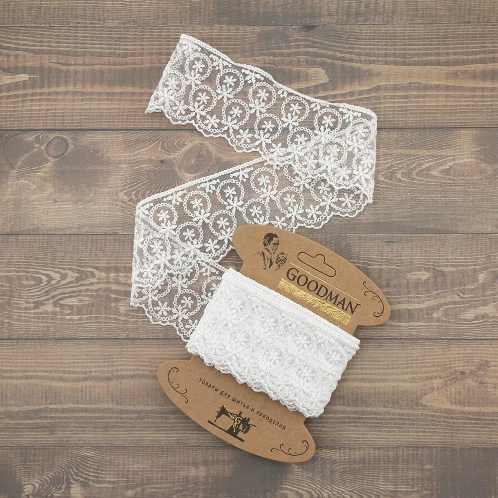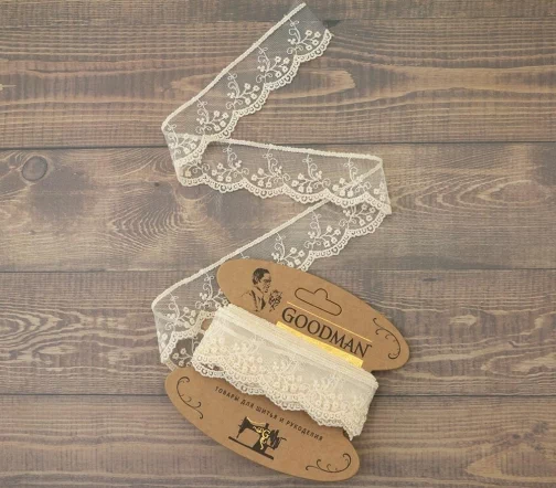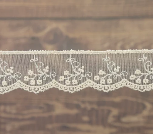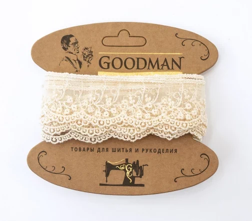 Кружево вышивка на тюле GOODMAN, ширина 32 мм, уп./3,5 м, цвет бежевый