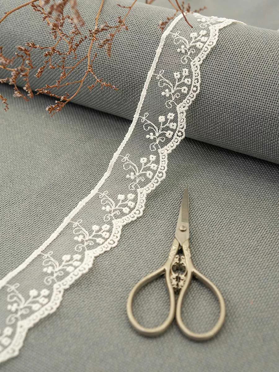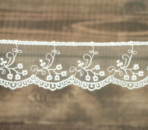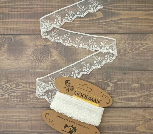Кружево вышивка на тюле GOODMAN, ширина 32 мм, уп./3,5 м, цвет молочный