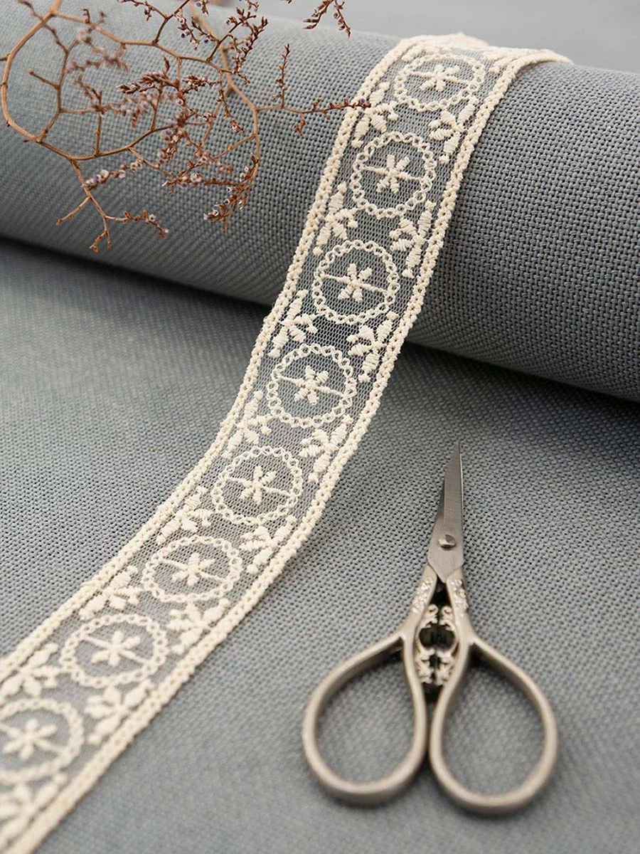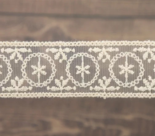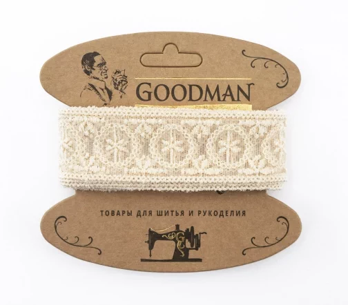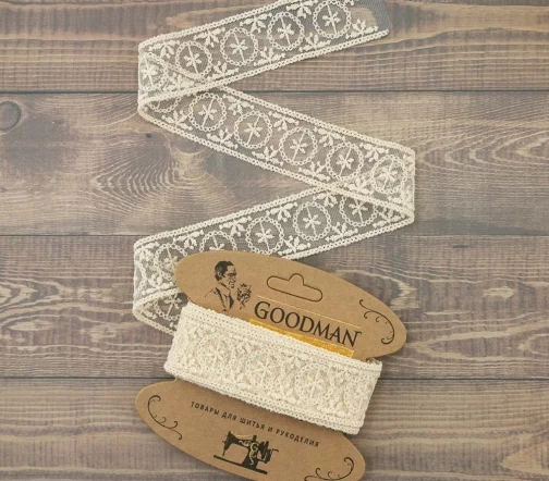 Кружево вышивка на тюле GOODMAN, ширина 33 мм, уп./3,5 м, цвет бежевый
