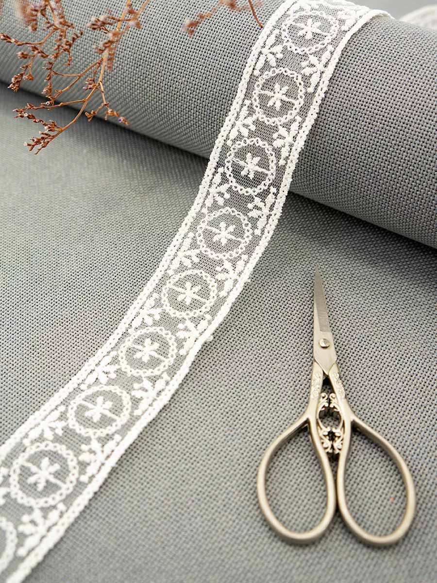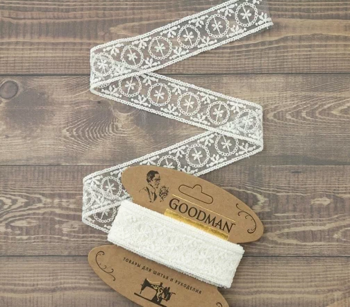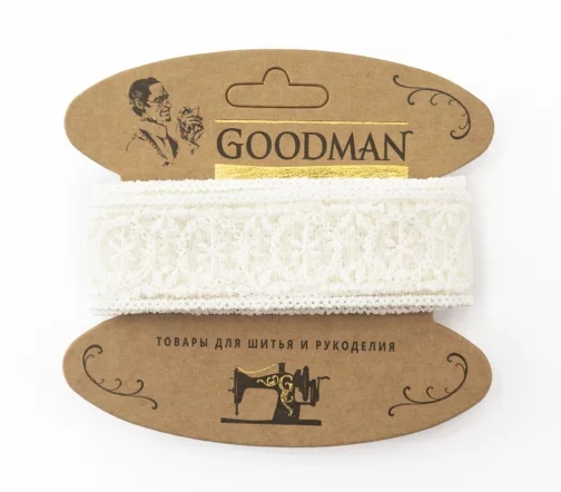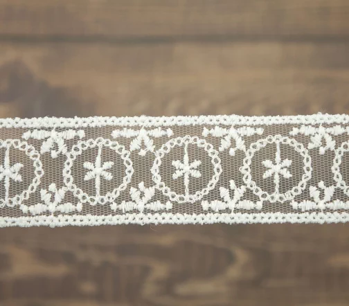 Кружево вышивка на тюле GOODMAN, ширина 33 мм, уп./3,5 м, цвет молочный