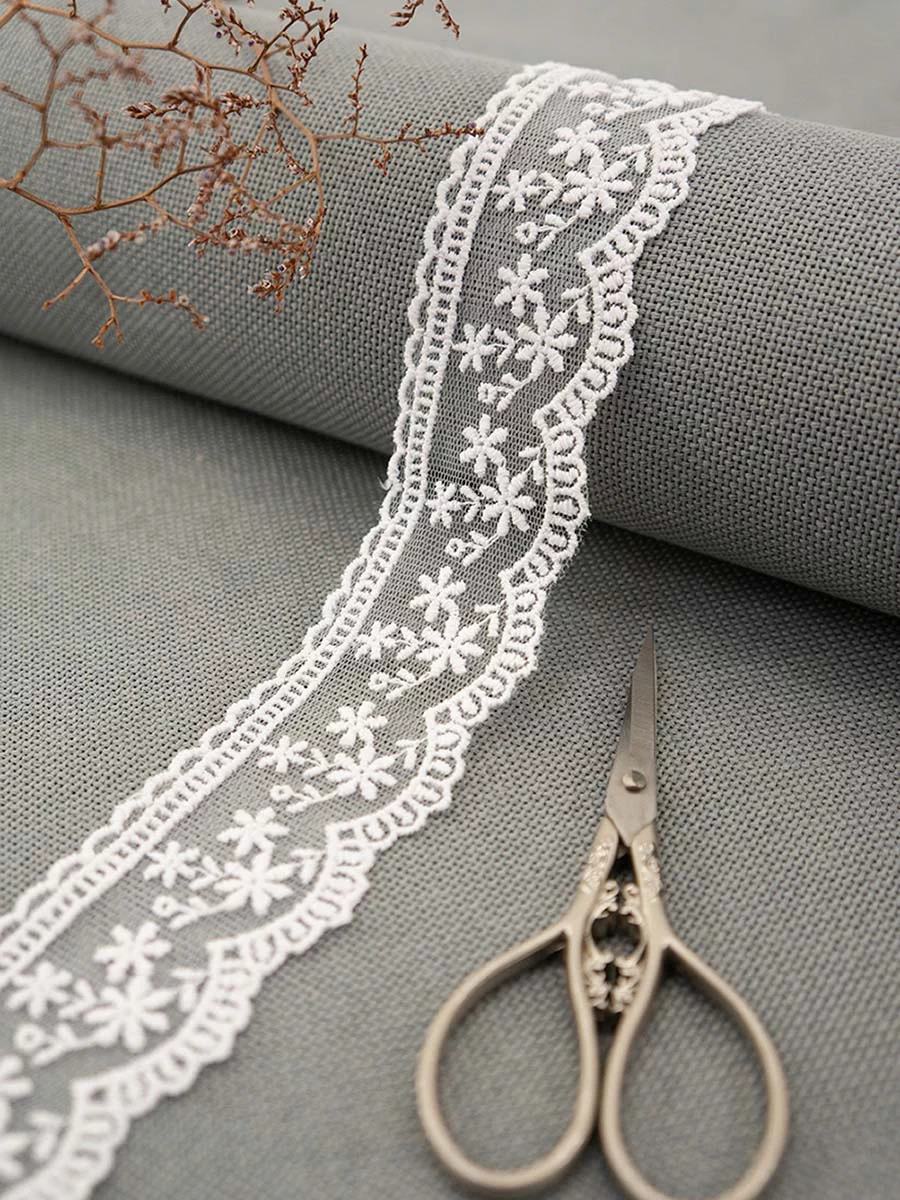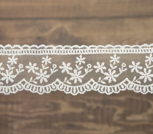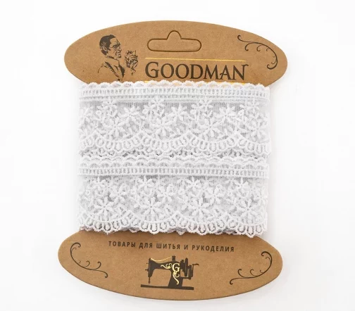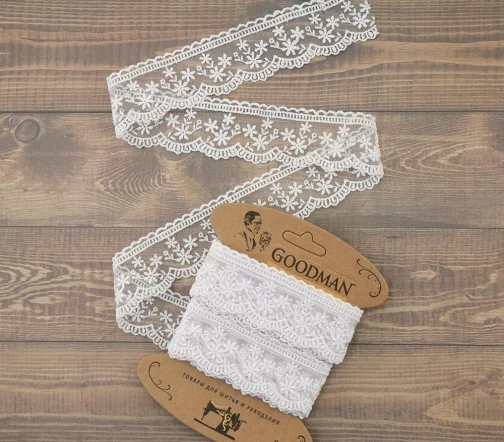 Кружево вышивка на тюле GOODMAN, ширина 40 мм, уп./4,5 м, цвет белый