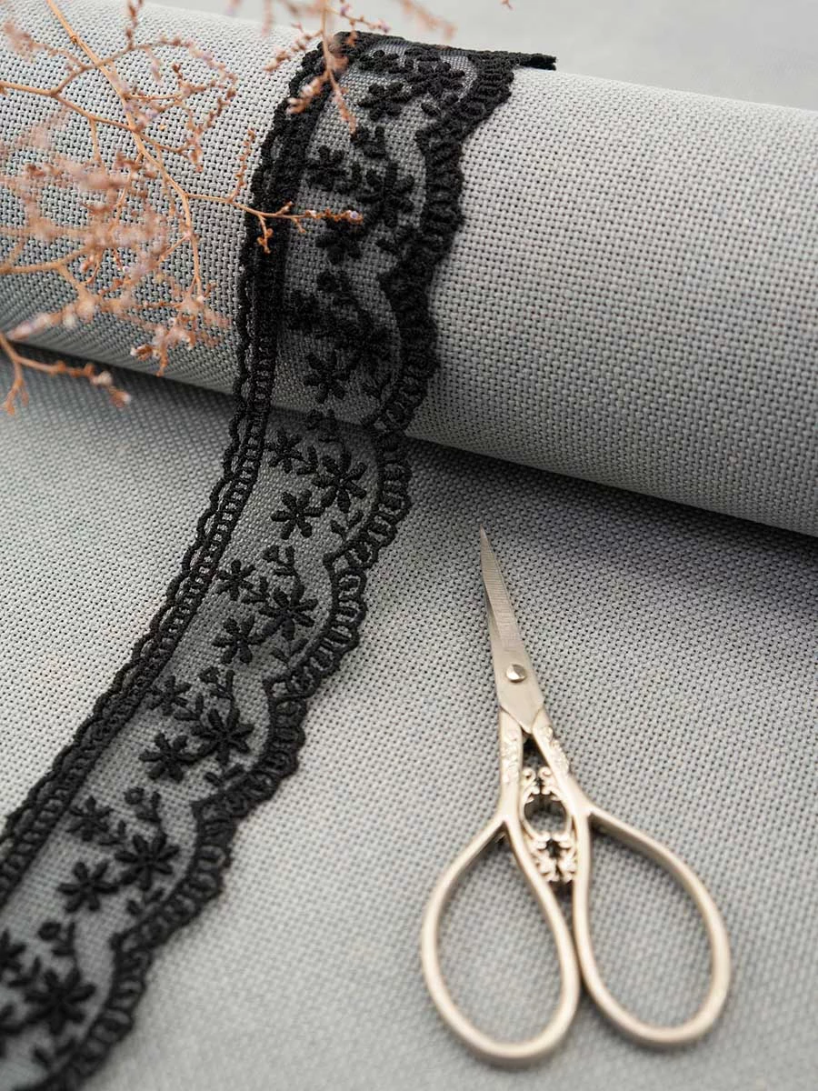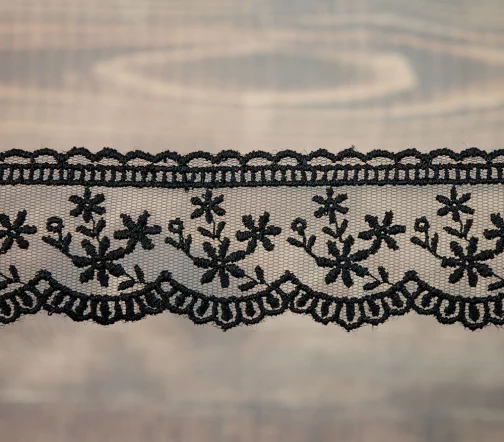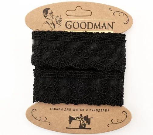 Кружево вышивка на тюле GOODMAN, ширина 40 мм, уп./4,5 м, цвет черный