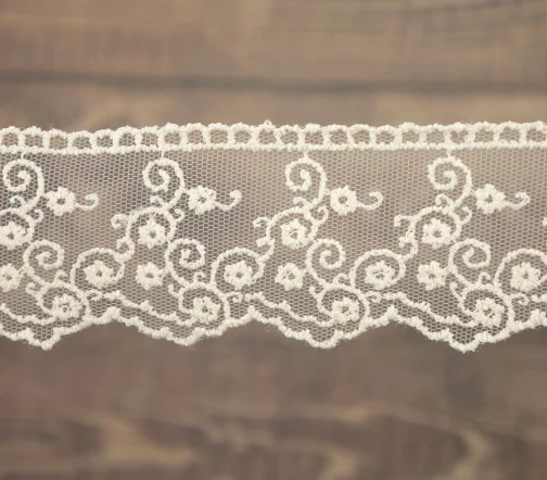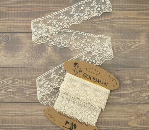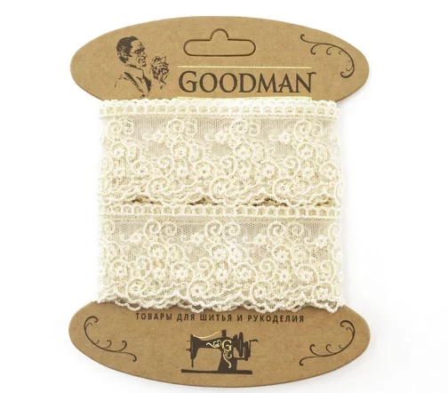 Кружево вышивка на тюле GOODMAN, ширина 42 мм, уп./3,5 м, цвет бежевый