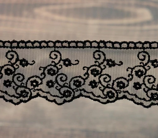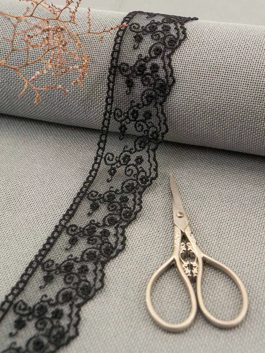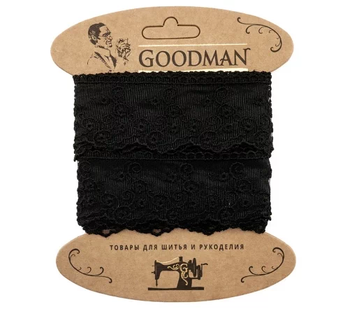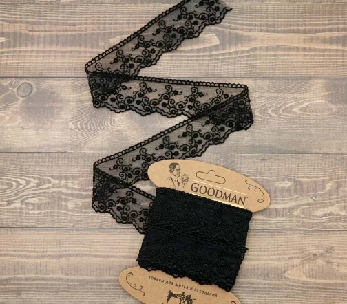 Кружево вышивка на тюле GOODMAN, ширина 42 мм, уп./3,5 м, цвет черный