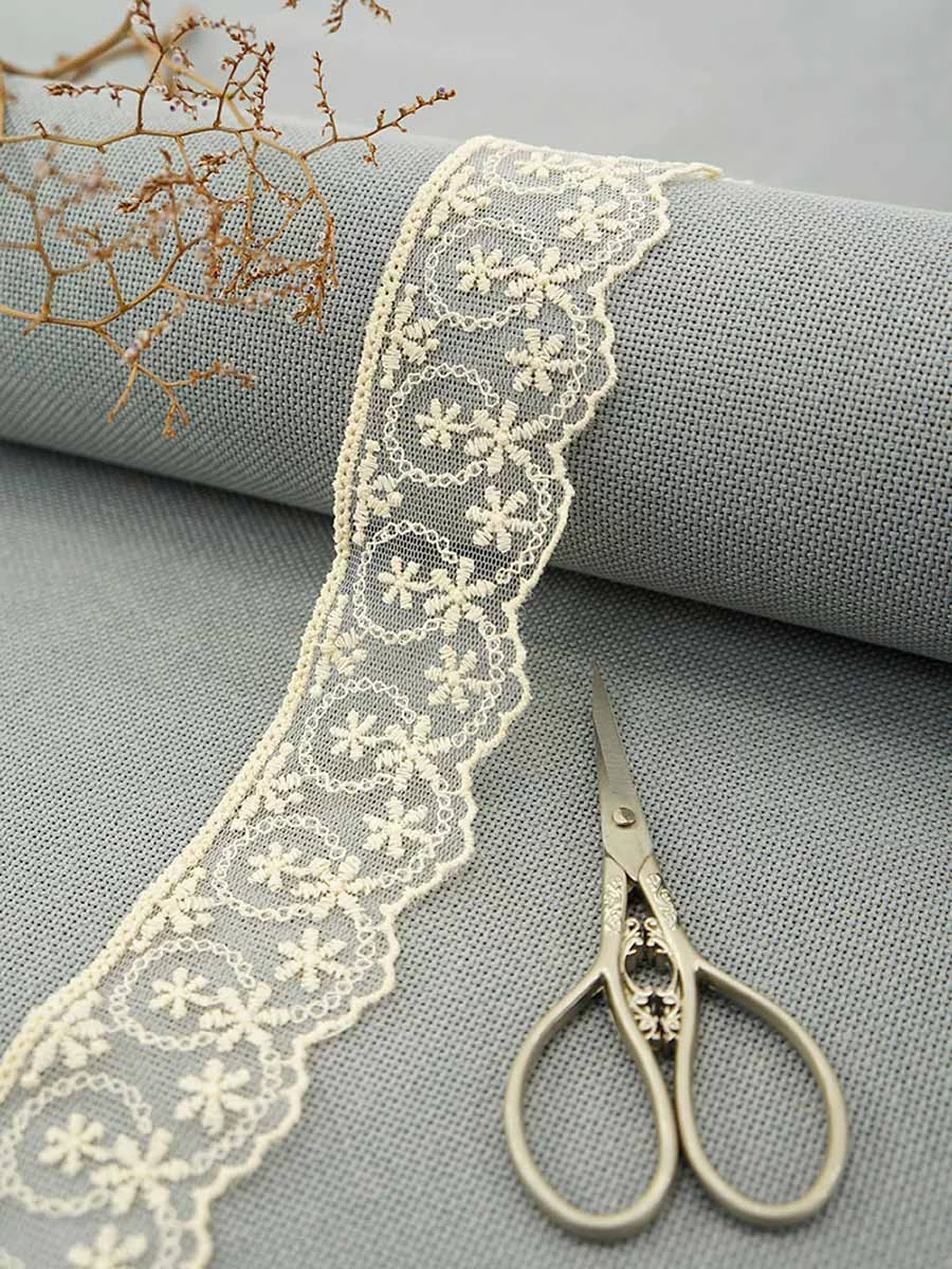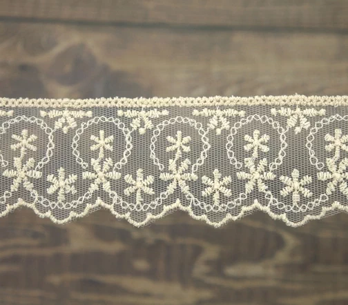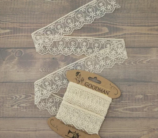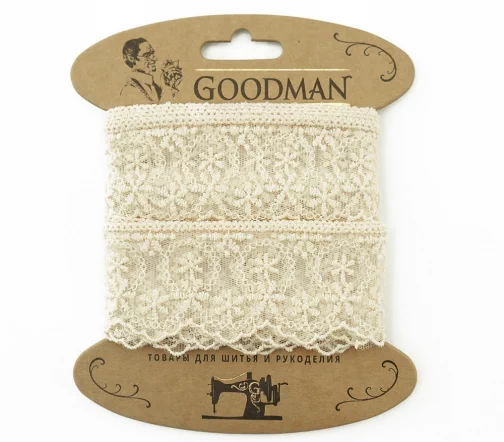 Кружево вышивка на тюле GOODMAN, ширина 45 мм, уп./3,5 м, цвет бежевый