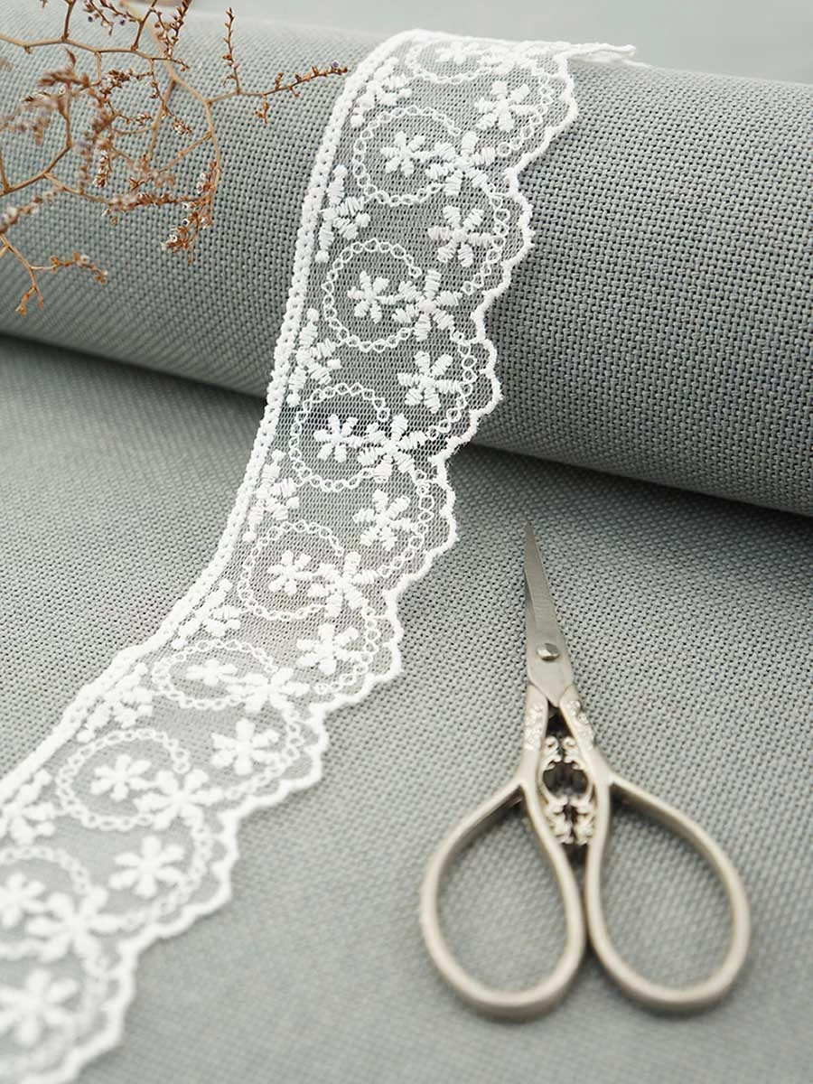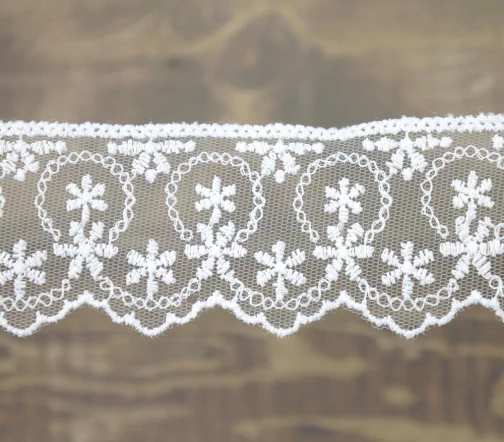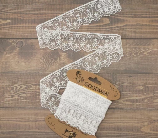 Кружево вышивка на тюле GOODMAN, ширина 45 мм, уп./3,5 м, цвет белый