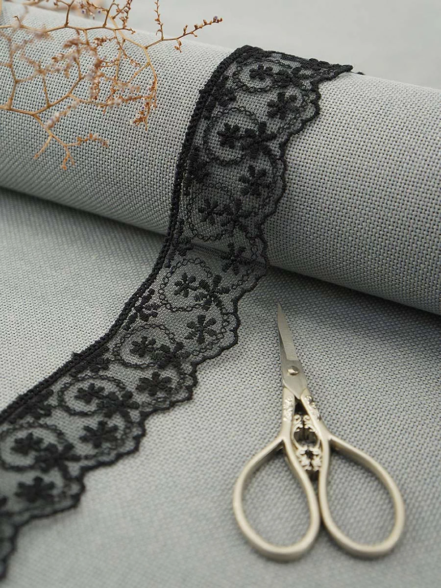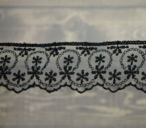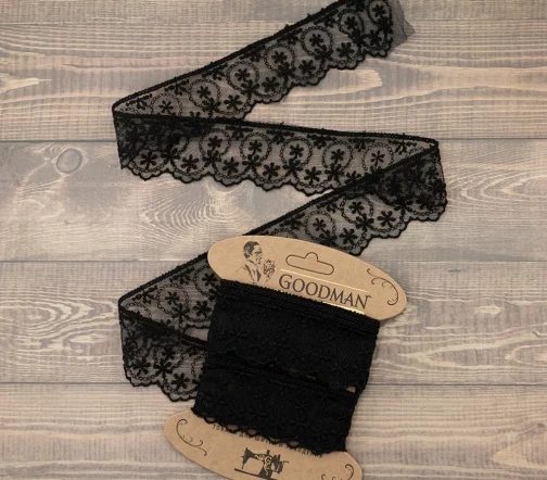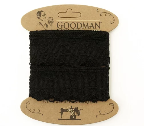 Кружево вышивка на тюле GOODMAN, ширина 45 мм, уп./3,5 м, цвет черный