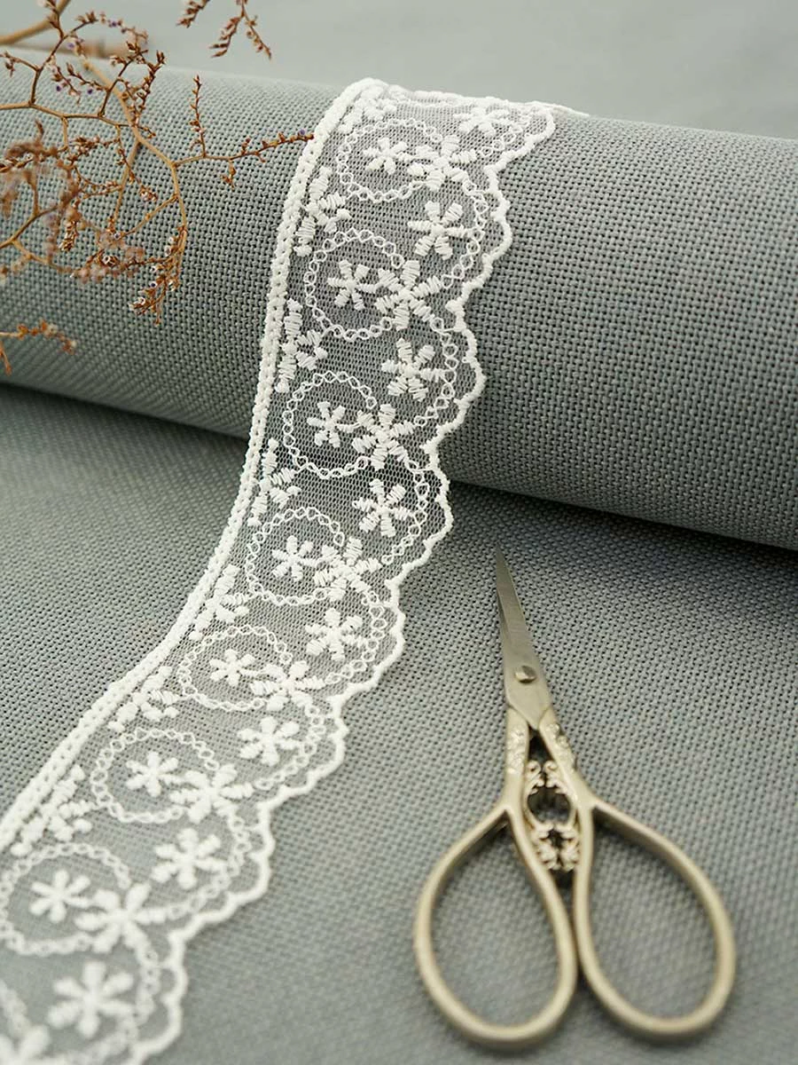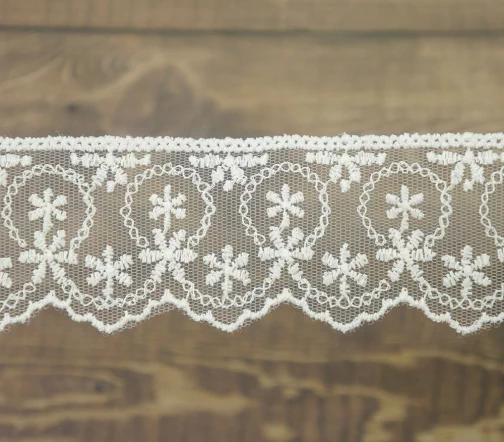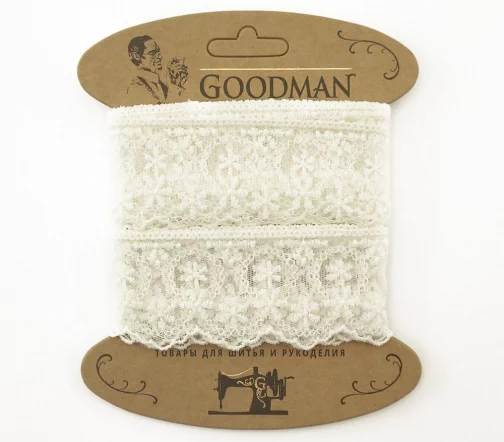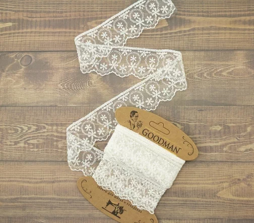 Кружево вышивка на тюле GOODMAN, ширина 45 мм, уп./3,5 м, цвет молочный