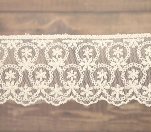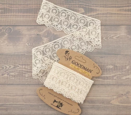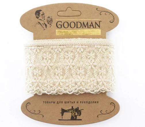 Кружево вышивка на тюле GOODMAN, ширина 63 мм, уп./3,5 м, цвет бежевый