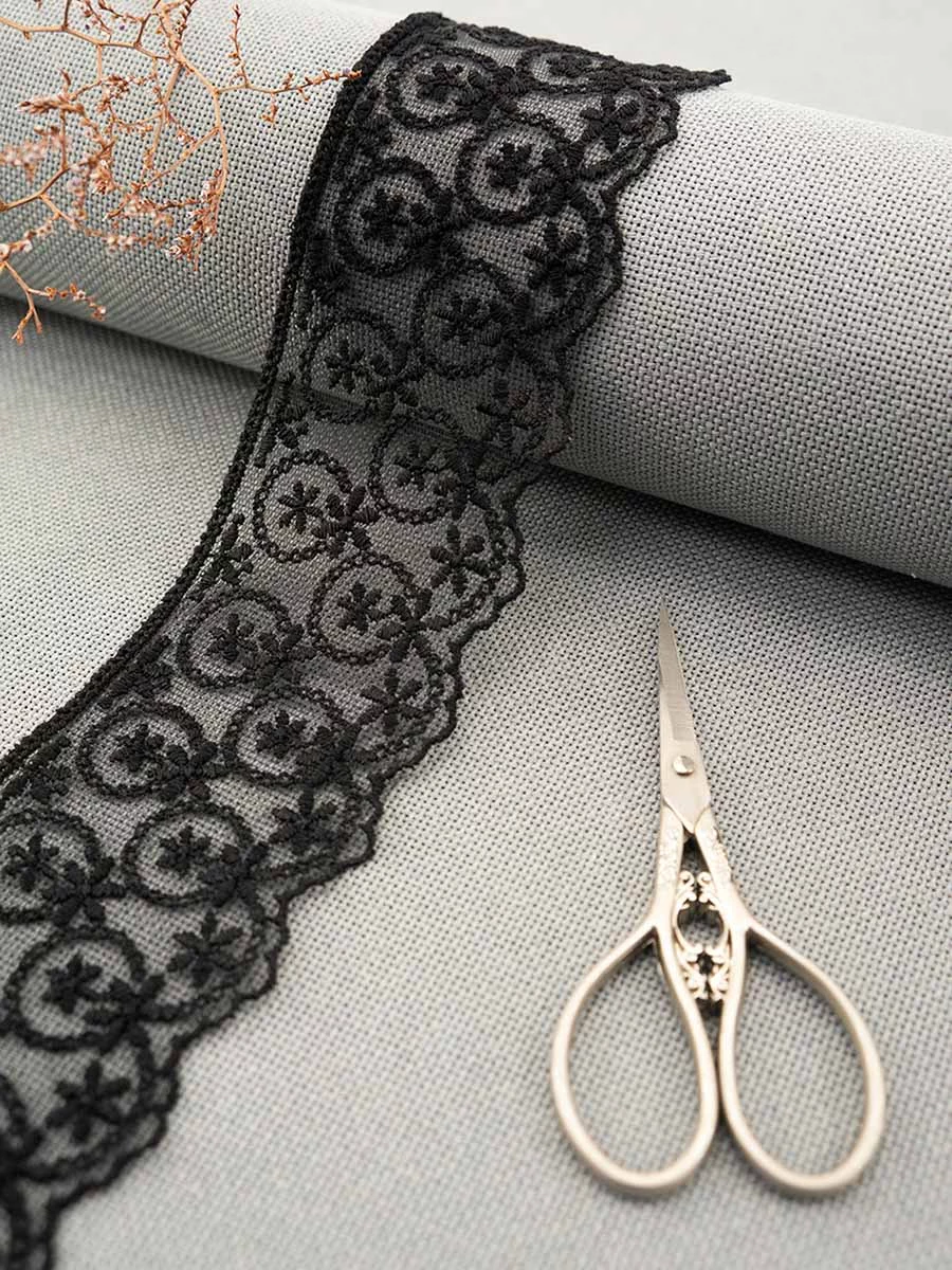 Кружево вышивка на тюле GOODMAN, ширина 63 мм, уп./3,5 м, цвет черный