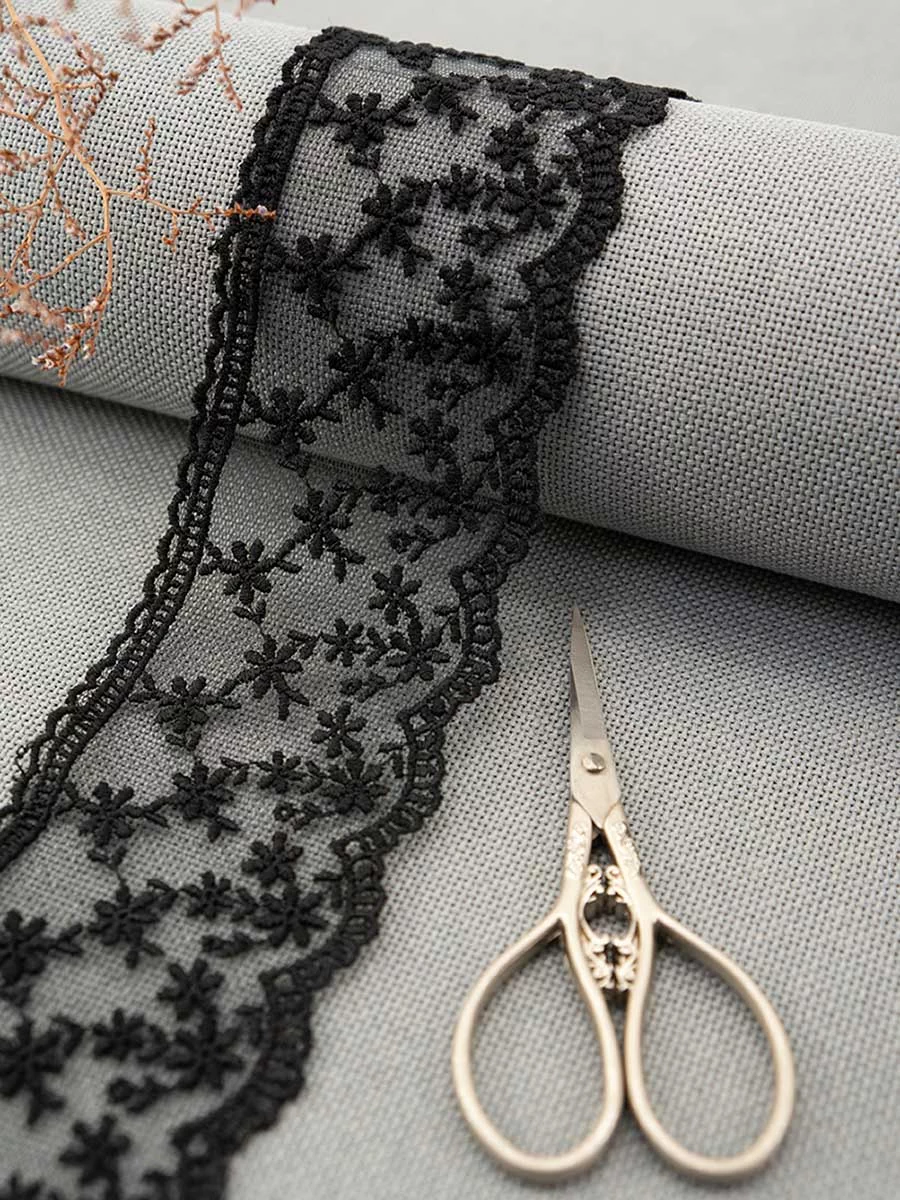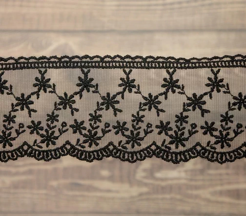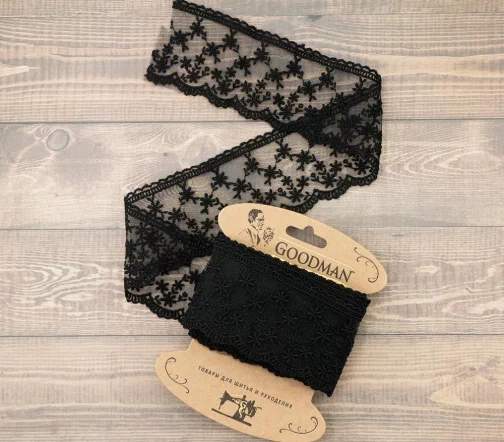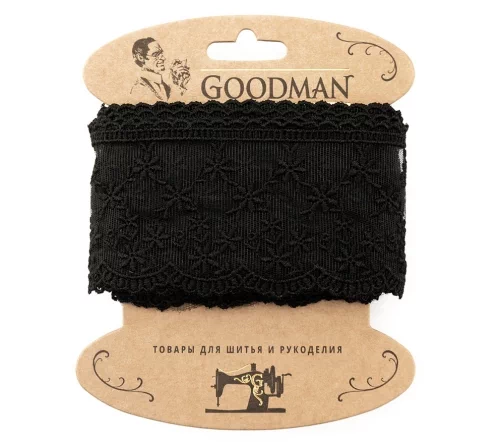 Кружево вышивка на тюле GOODMAN, ширина 65 мм, уп./4,5 м, цвет черный