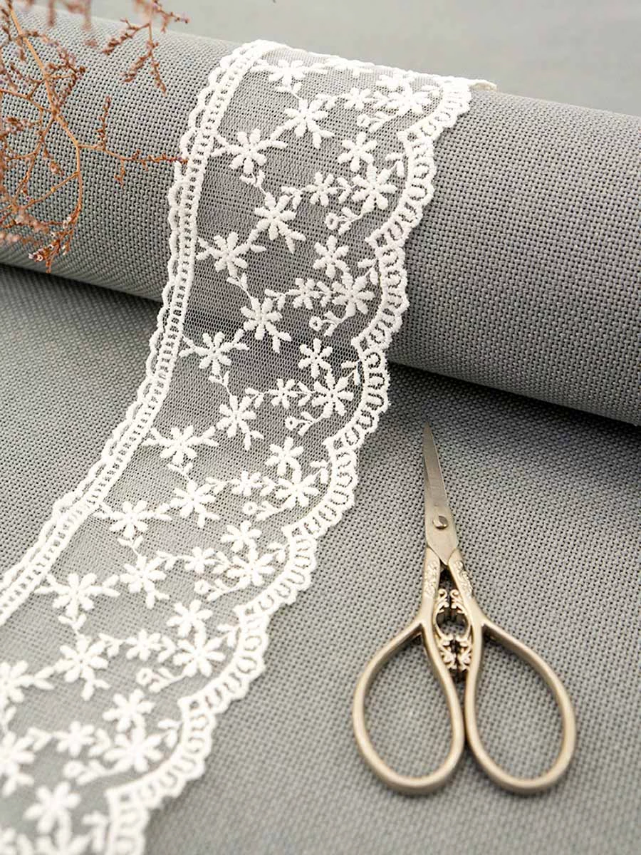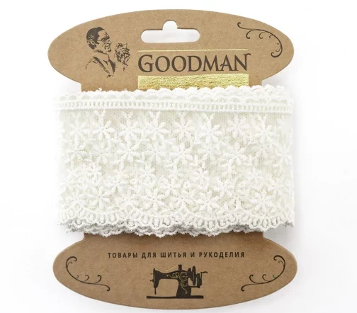 Кружево вышивка на тюле GOODMAN, ширина 65 мм, уп./4,5 м, цвет молочный