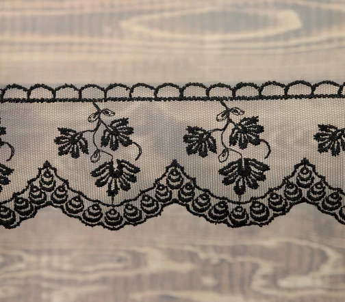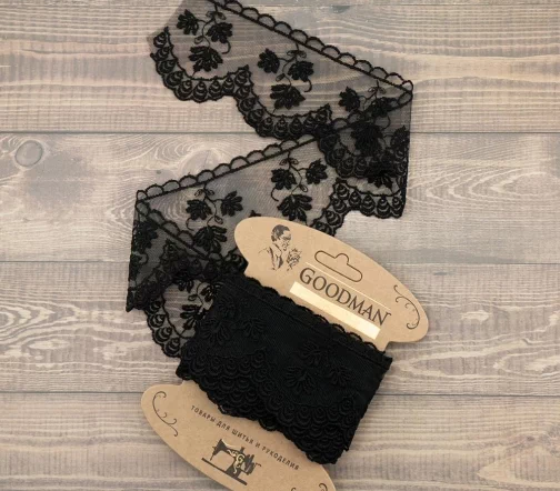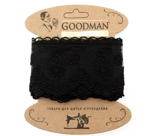 Кружево вышивка на тюле GOODMAN, ширина 70 мм, уп./3,5 м, цвет черный