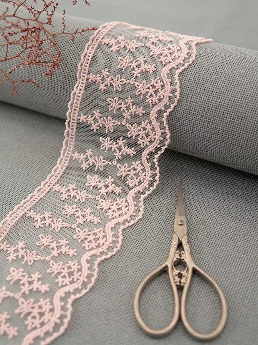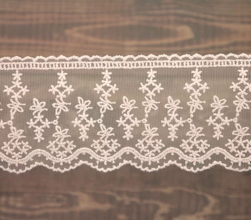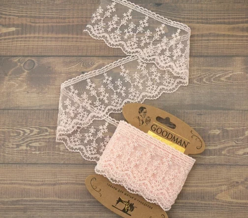 Кружево вышивка на тюле GOODMAN, ширина 70 мм, уп./4,5 м, цвет бледно-розовый