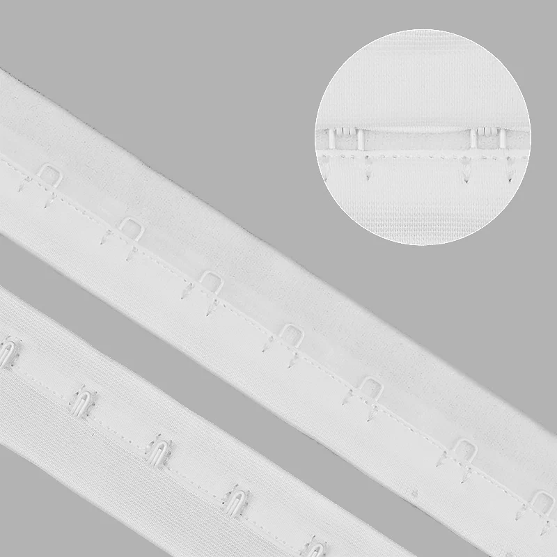 Тесьма с крючками и петлями представляет собой однорядную застежку на мягкой ленте. Используется при пошиве нижнего женского белья, корсетов, корсажных платьев, оригинальной одежды. Крючки предназначены для создания потайной застежки, которая не должна быть видна с лицевой стороны изделия. Тесьма удобна для вшивания в изделия, не деформируется, что поможет продлить срок службы вашего изделия. Ширина тесьмы 28 мм, расстояние между крючками 19 мм.