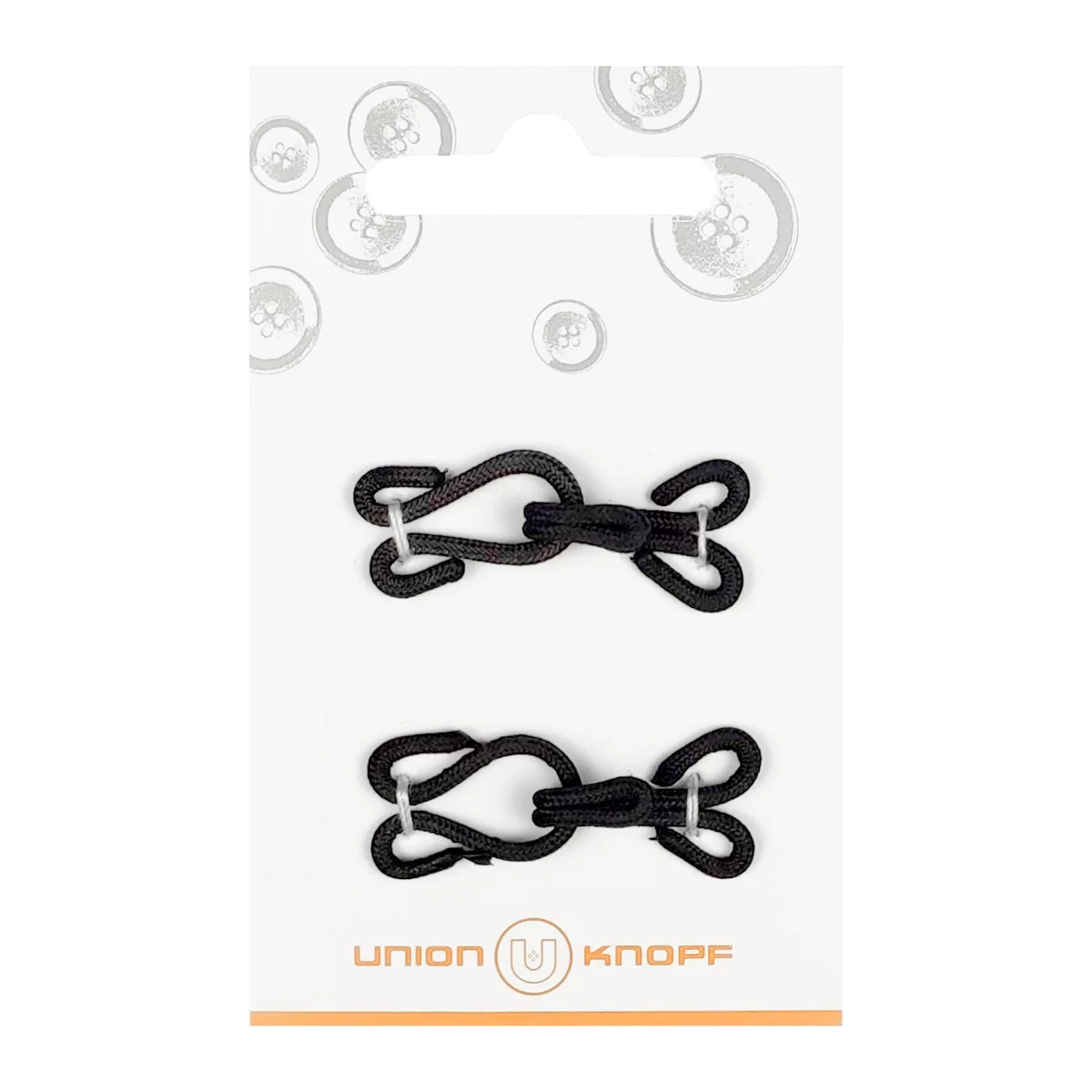 Металлические крючки в текстильной оплетке подходят для верхней одежды, в основном меховой (шуб, дубленок). Защищены от коррозии, при правильном использовании практически незаметны. Крючки и петли имеют длину около 35 мм и благодаря боковым ушкам могут быть легко вшиты в одежду.