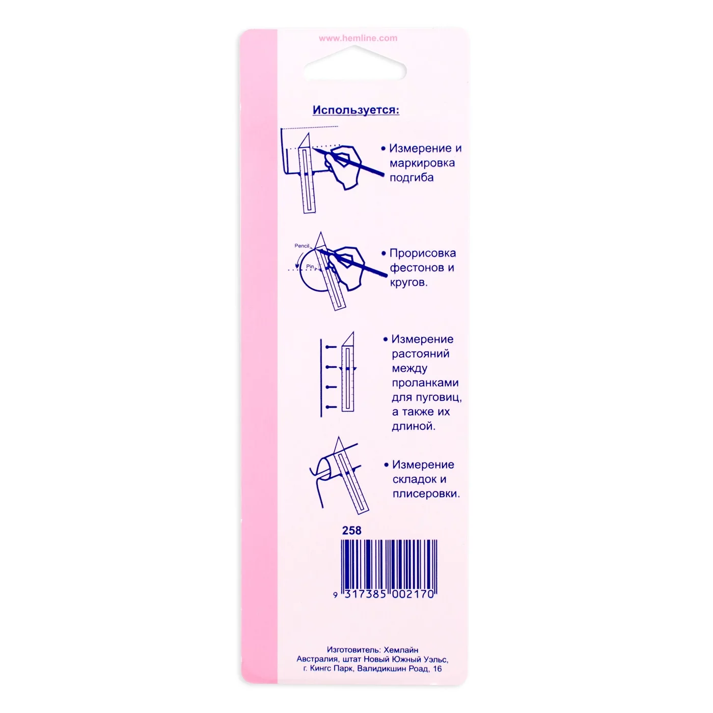 258.E Линейка раздвижная для разметки на ткани, пластик, Hemline
