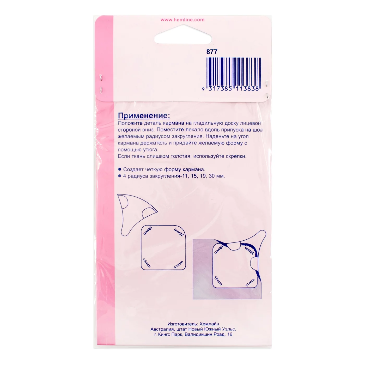 877 Лекало для карманов, металл, радиусы скругления углов: 11, 15, 19, 30 мм, Hemline