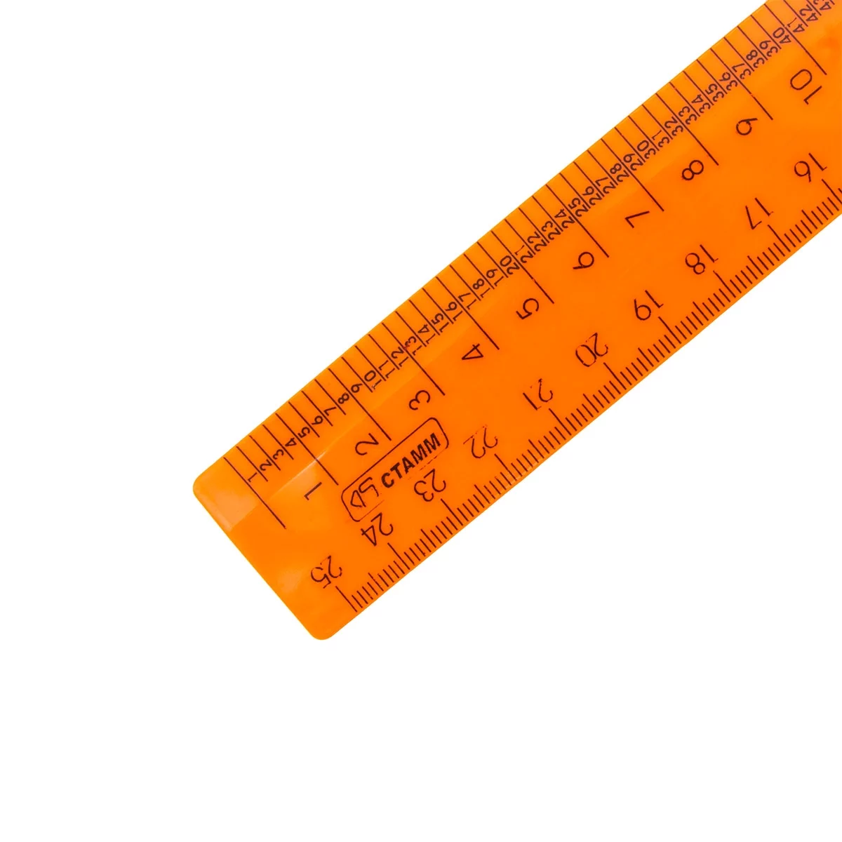 ЛН62 Линейка закройщика цветная, флюоресцентная, прозрачная 25 см, СТАММ