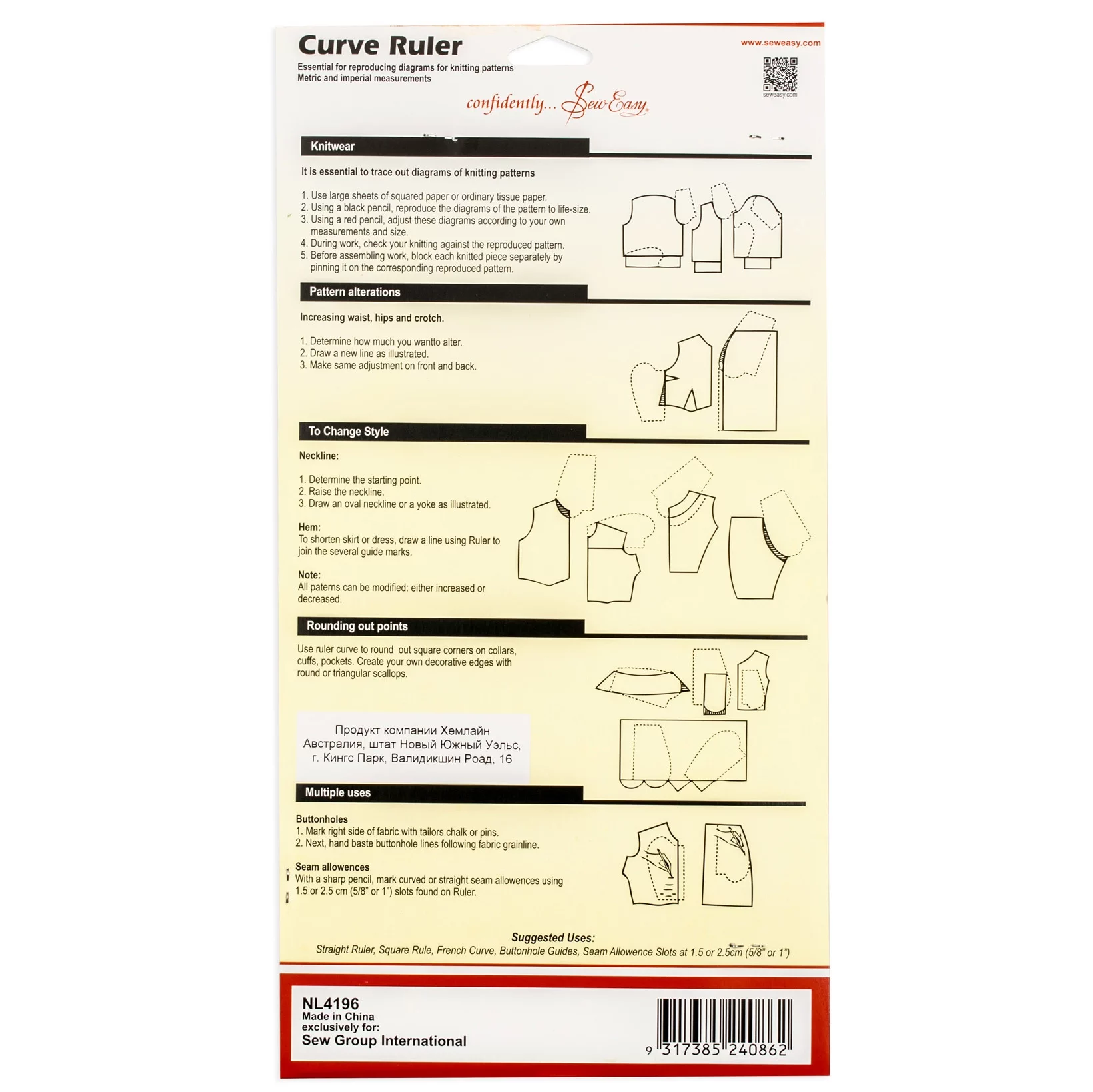 NL4196 Портновское лекало, пластик, Hemline