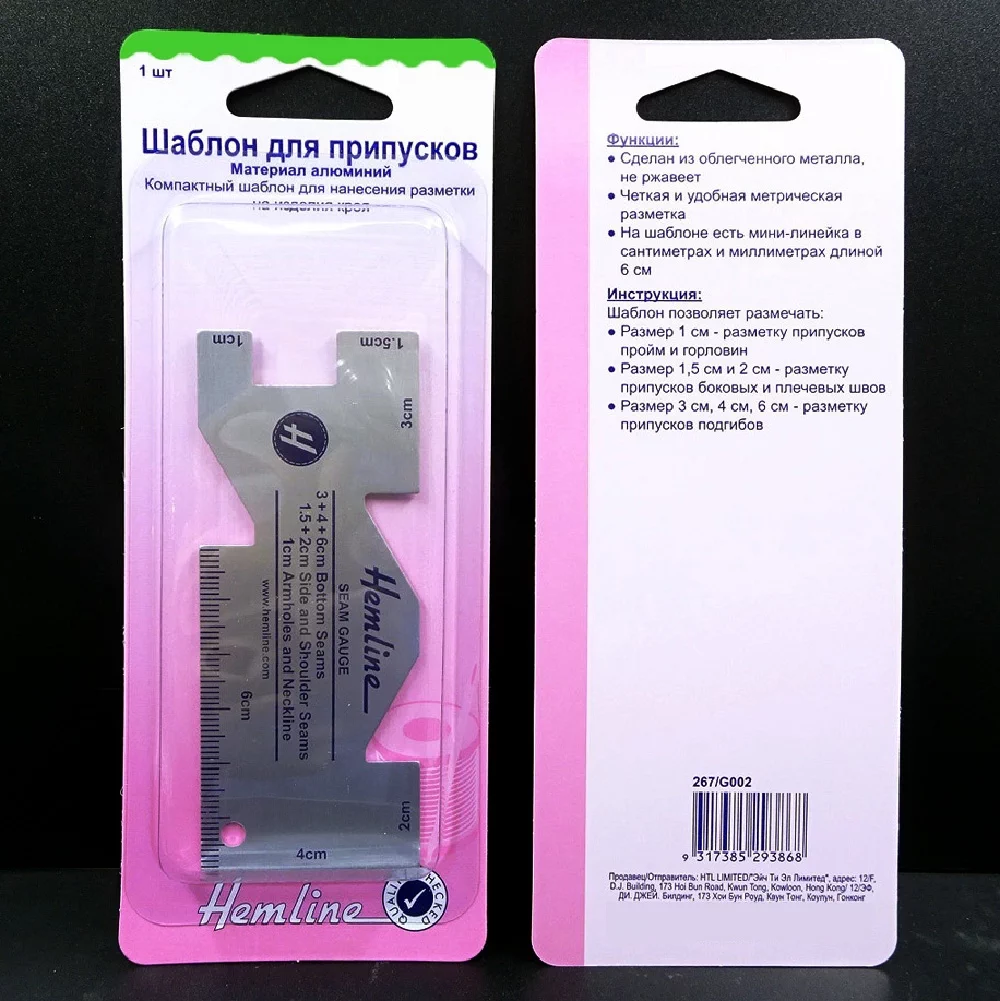 267 Линейка-шаблон для припусков, 10*4 см, металл, Hemline