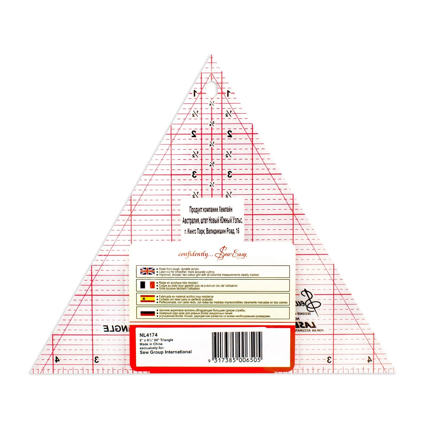 NL4174 Линейка-треугольник с углом 60*, градация в дюймах, 8" Х 9 1/4", Hemline