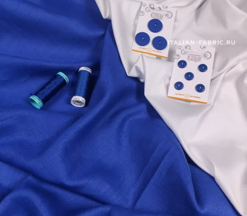 Изумительного качества однотонный лён Loro Piana оригинального оттенка синего цвета - кобальт. Идеален на блузку, комбинезон, сафаран, платье, брюки. Средней плотности, ближе к тонкому, не просвечивает, мнётся средне. Прекрасно смотрится с однотонным белым трикотажем.