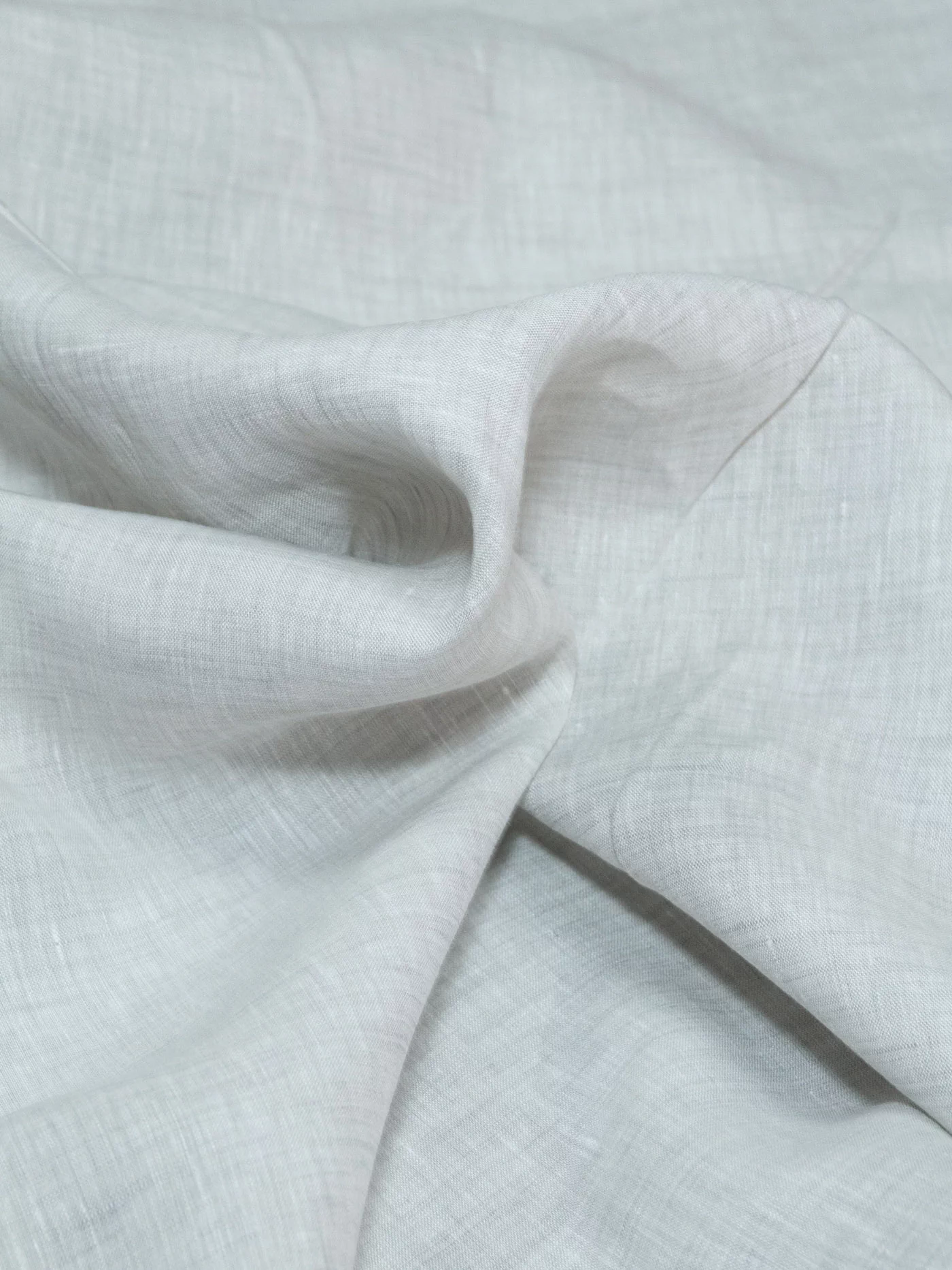 Плательно-рубашечный итальянский лён в безупречном актуальном оттенке - серо-белый жемчужный меланж. Идеально финиширована, очень приятная на ощупь. Брендовое качество Loro Piana.