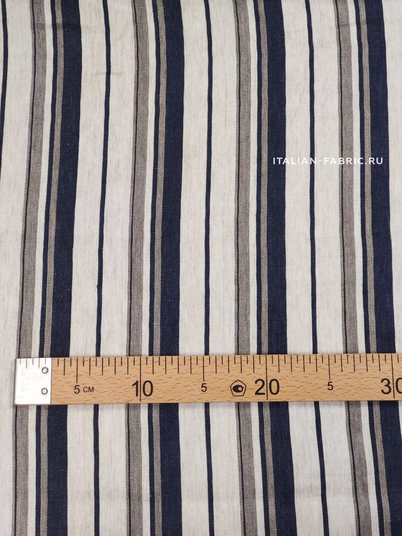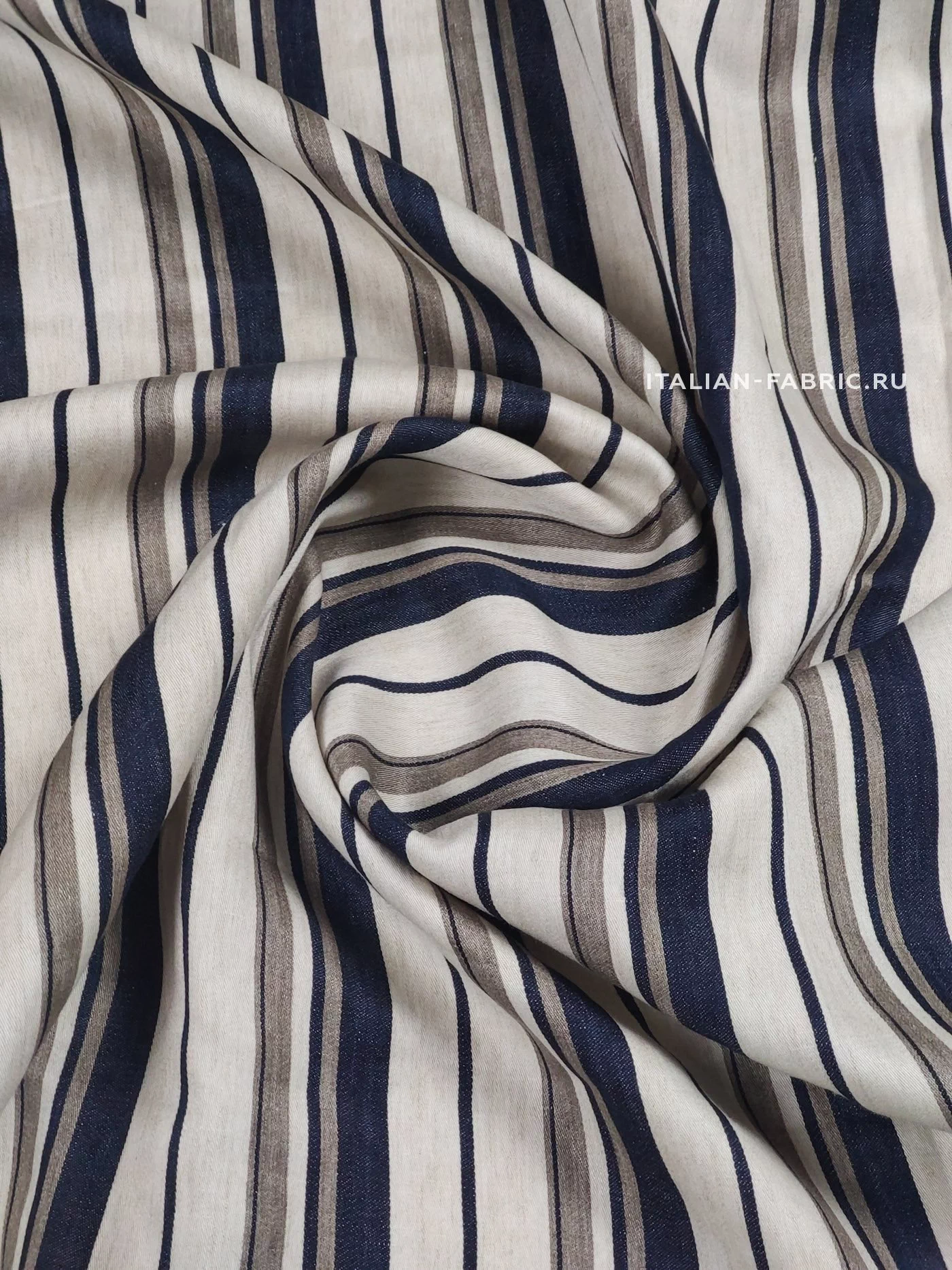 Лен в бежевую/серую/темно-синюю полоску, 1092103