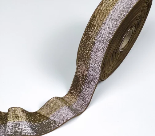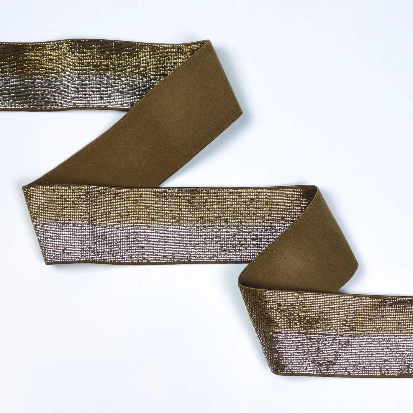 Стильная резинка в полоску. Блестящие нити: серебро и в тон основы ленты. Очень красиво играет на свету, фото не передают реального блеска люрекса. Прекрасно подойдёт на отделки и в качестве пояса любым изделиям.