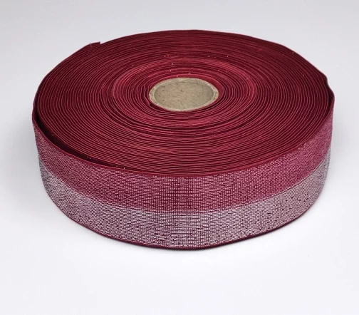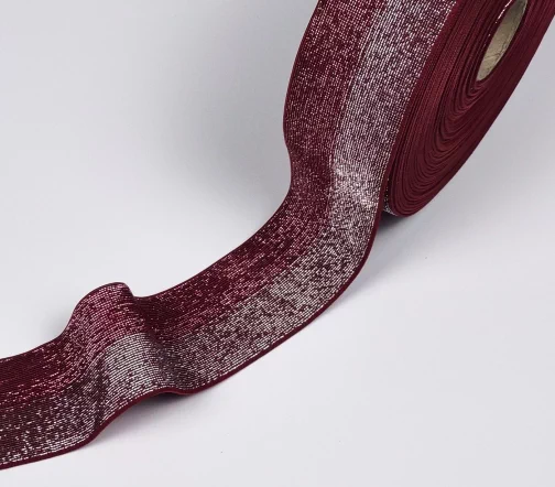 Стильная резинка в полоску. Блестящие нити: серебро и в тон основы ленты. Очень красиво играет на свету, фото не передают реального блеска люрекса. Прекрасно подойдёт на отделки и в качестве пояса любым изделиям.