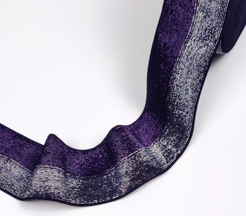 Стильная резинка в полоску. Блестящие нити: серебро и в тон основы ленты. Очень красиво играет на свету, фото не передают реального блеска люрекса. Прекрасно подойдёт на отделки и в качестве пояса любым изделиям.