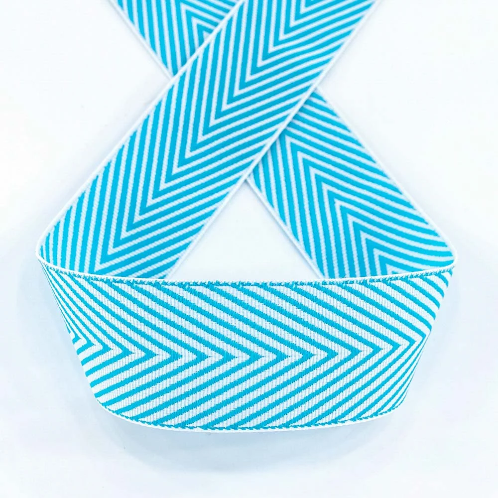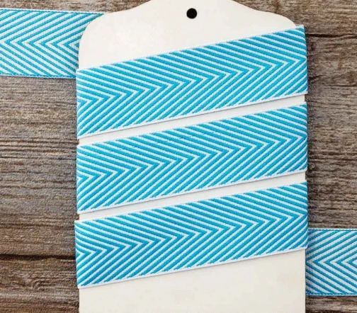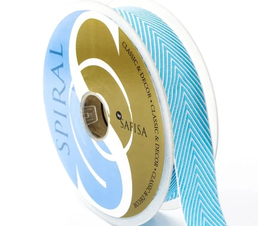 Лента жаккард Safisa "Зигзаг", 25 мм, цвет белый/голубой, 9202-25мм-04
