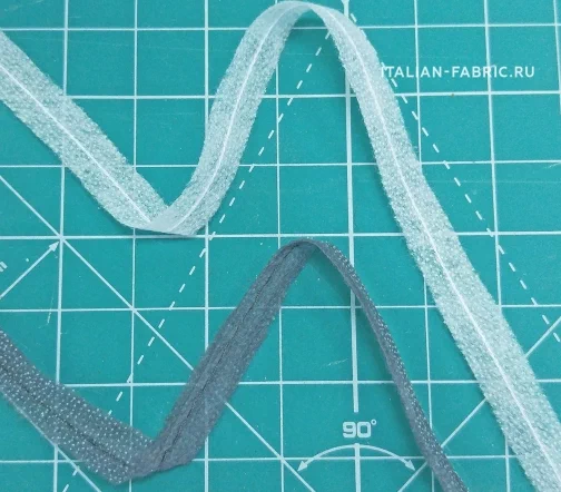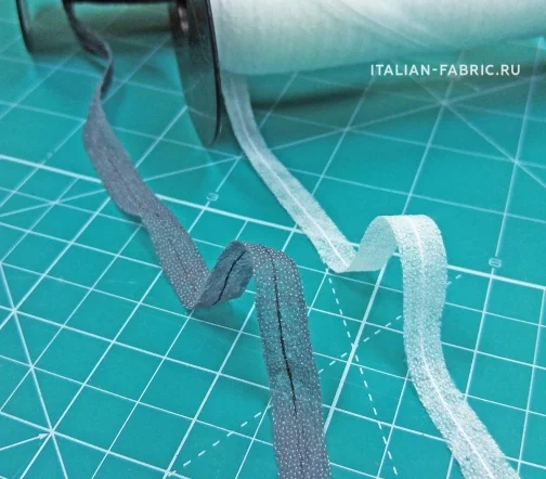 Фиксирующая клеевая лента укреплена по центру от растяжения строчкой. Её легко приутюжить в закругленные срезы. Для обработки всех краев изделия, например, горловы, проймы и т.п. Особенно подходит для эластичных и тонких тканей. Лента предохраняет шов от растяжения, при этом шов сохраняет свою эластичность. Края подгиба не сборят, шов остается плоским и мягким.