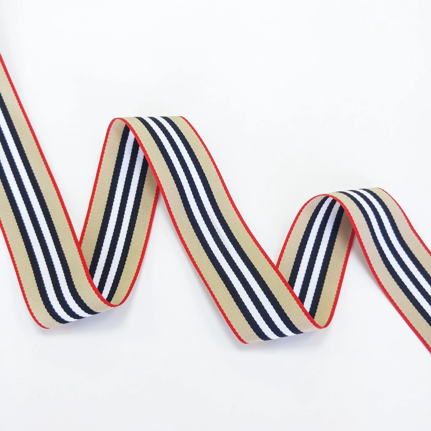 Лента лампасная в полоску, 38 мм, беж/черный/белый/красный