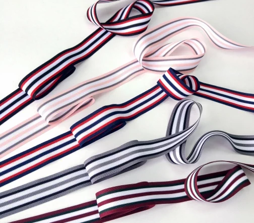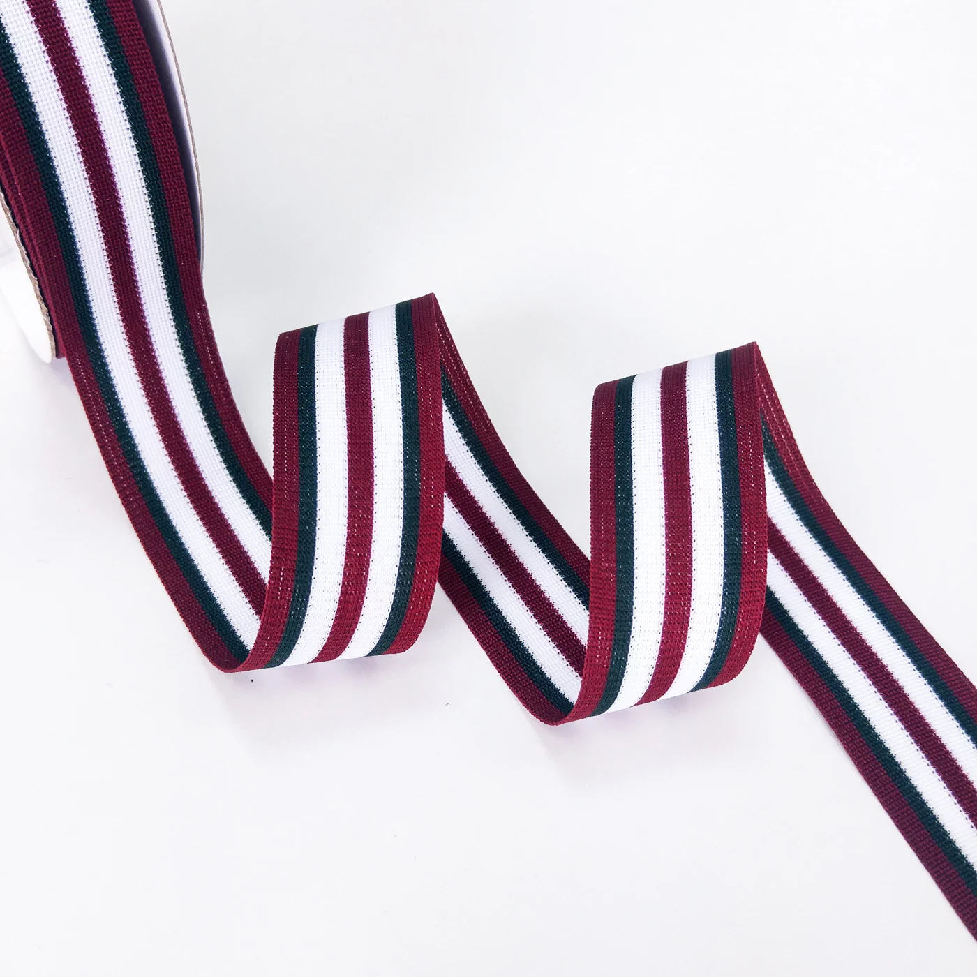Лента лампасная в полоску, 25 мм, бургунди/зеленый/белый, R2-01-25