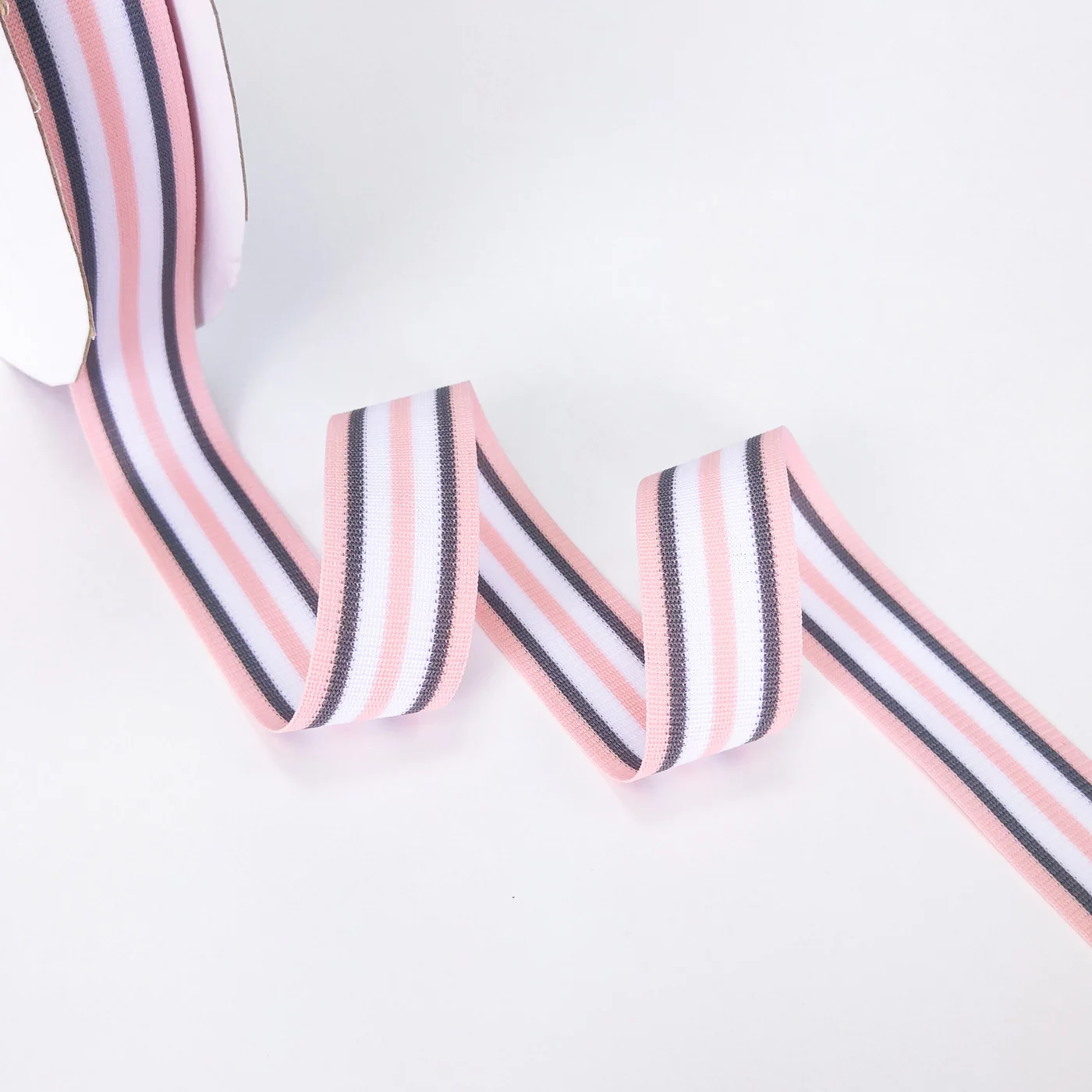 Лента лампасная в полоску, 25 мм, розовый/серый/белый, R2-02-25