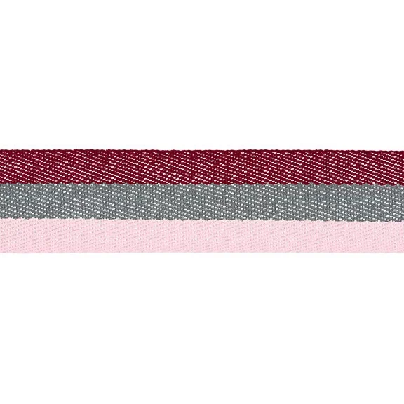 Лента отделочная жаккардовая, с метанитью, 28 мм, бордо/серый/светло-розовый