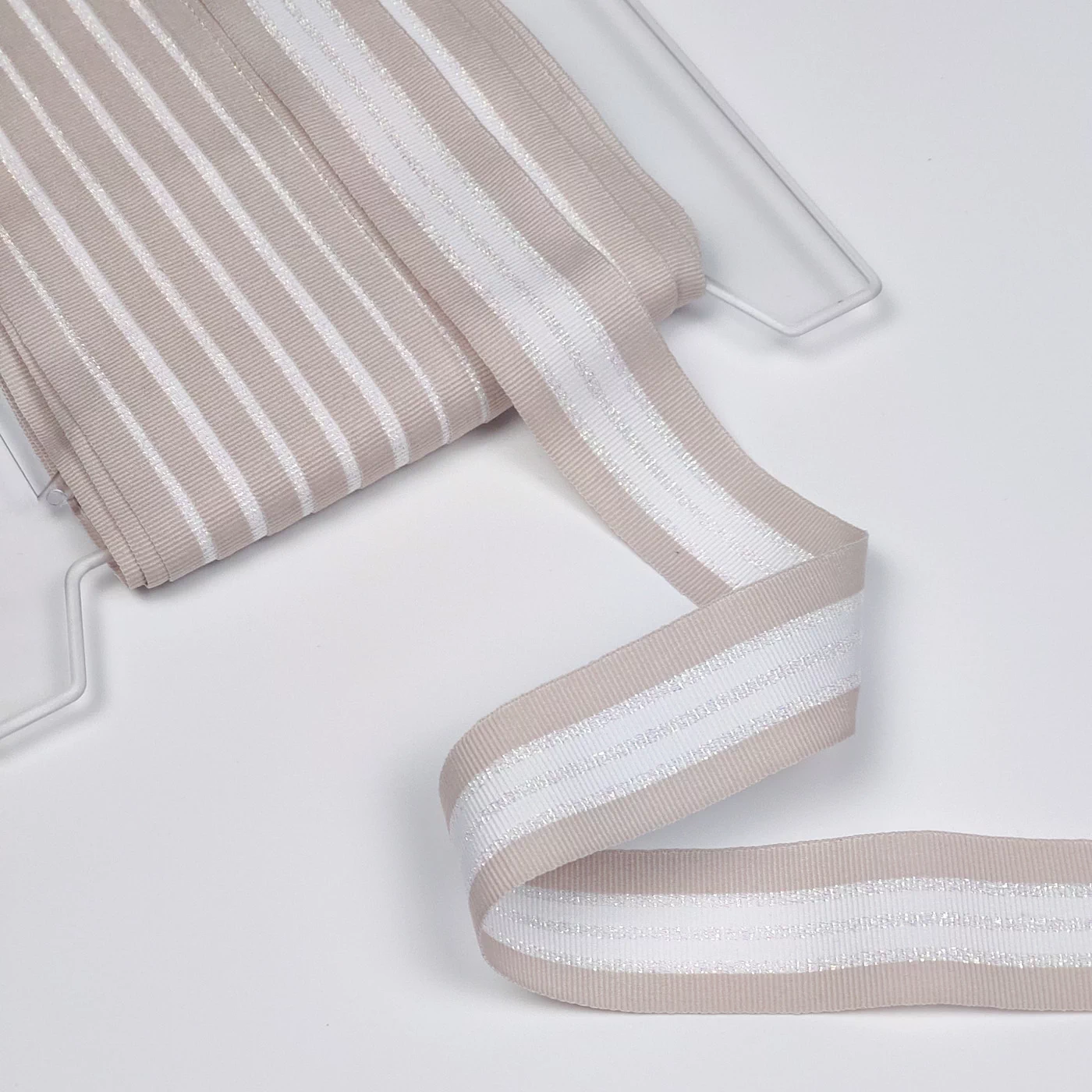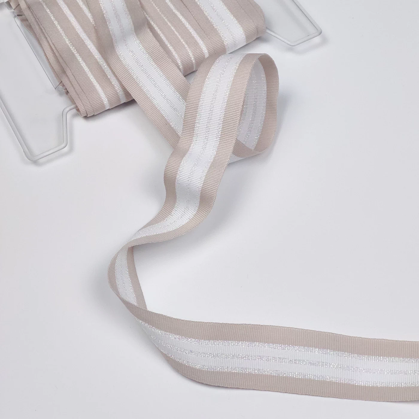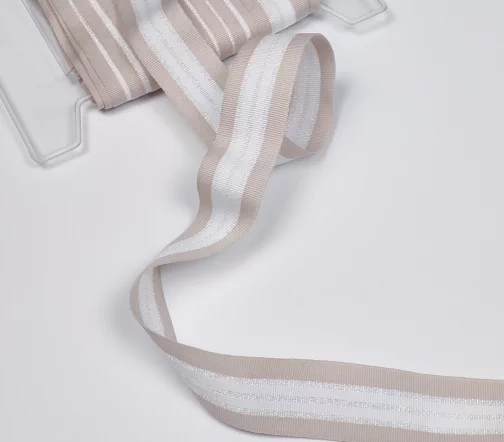 Стильная репсовая лента в полоску с мультицветной блестящей нитью. Очень красиво играет на свету, фото не передают реального блеска люрекса. Достаточно мягкая, но не рыхлая.