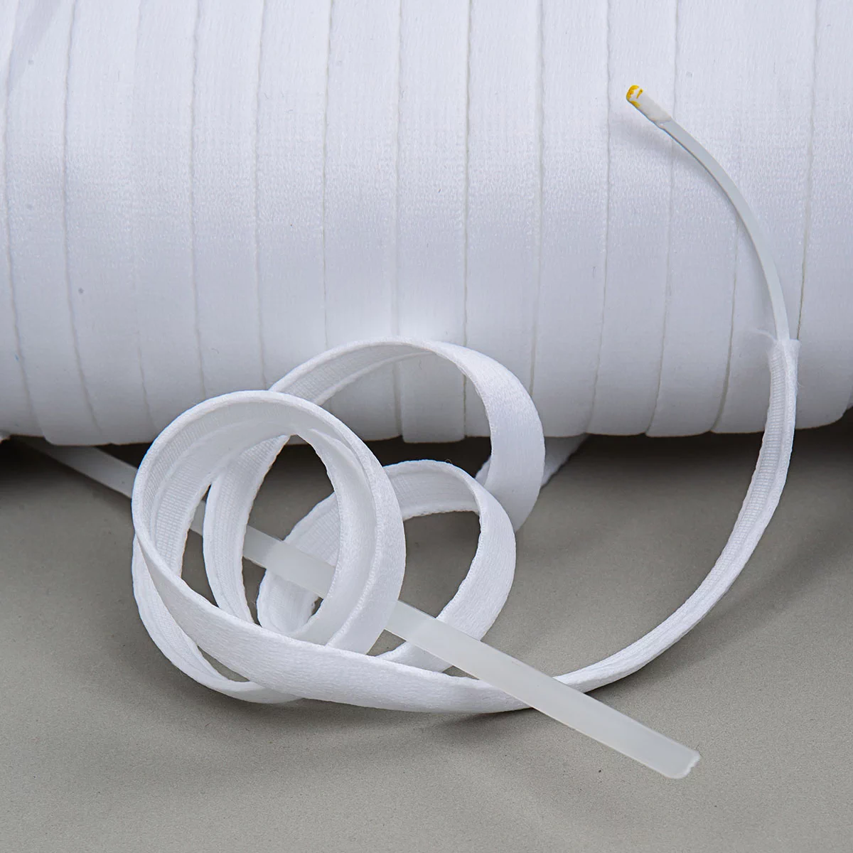 Лента тоннельная для корсетных косточек необходима для производства нижнего белья, а именно бюстгальтеров и корсетов. Тоннельная лента обеспечивает высокий комфорт и прочность женского нижнего белья и корсетов, позволяя создавать необходимую поддержку телу. Представленная тоннельная лента бесшовная, выполнена из полиэстера и эластана. Плотность ленты – 7,10 гр/м.п. Ширина ленты 10 мм.