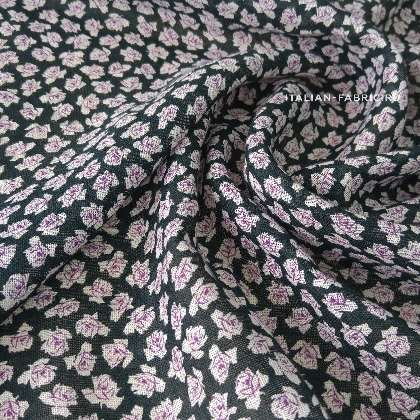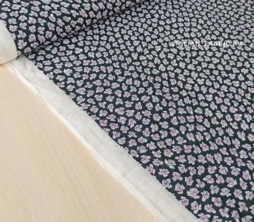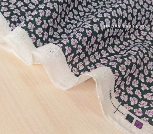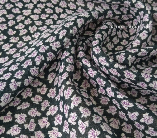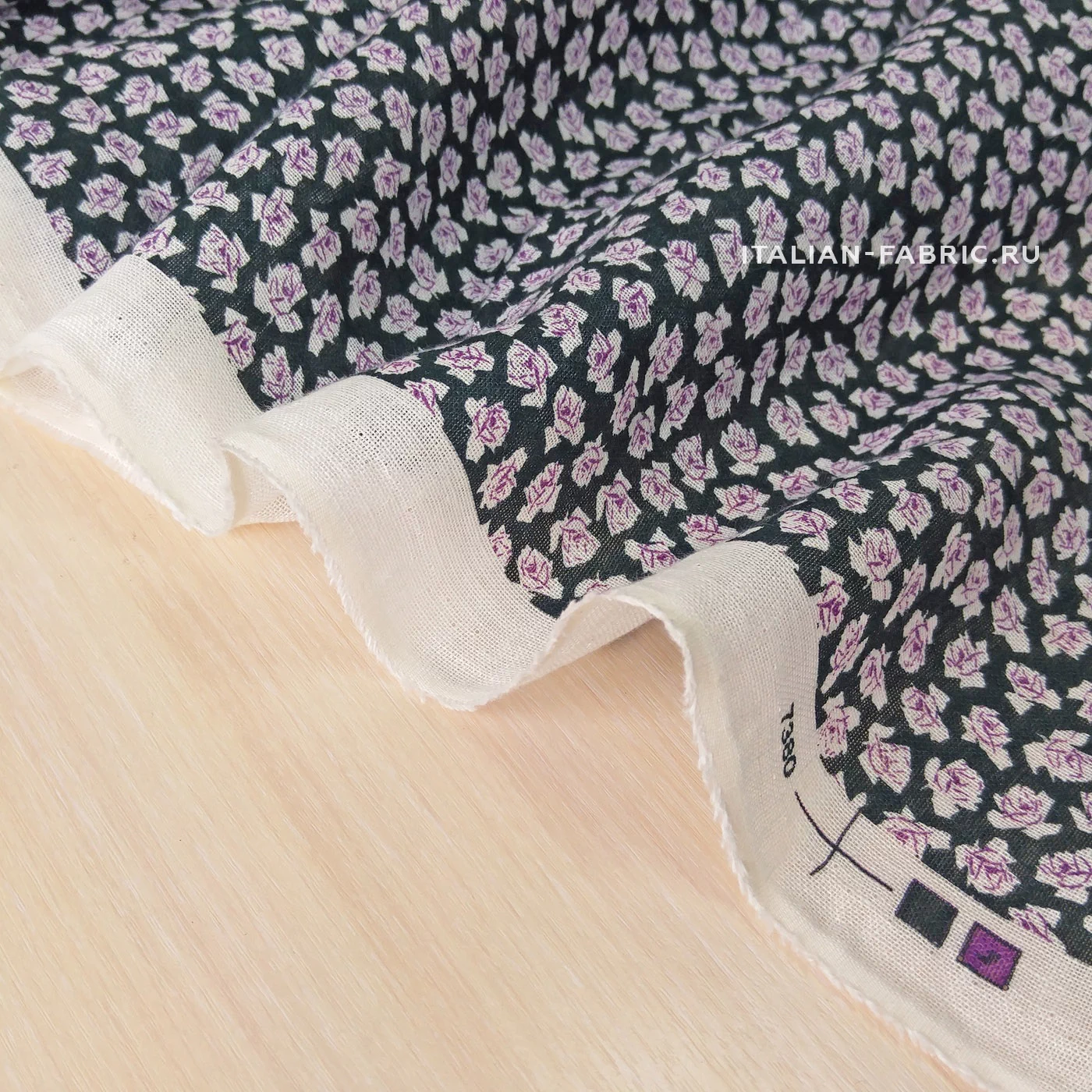 Шикарного качества плательно-блузочный лён из Италии. Мелкие белые цветочки с фиолетовыми прожилками на глубоком черно-зеленом фоне. Подходит для топов, блуз, туник, сарафанов и платьев.