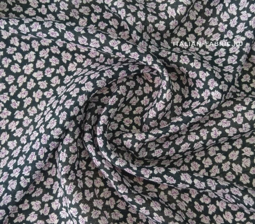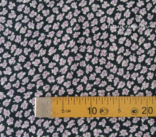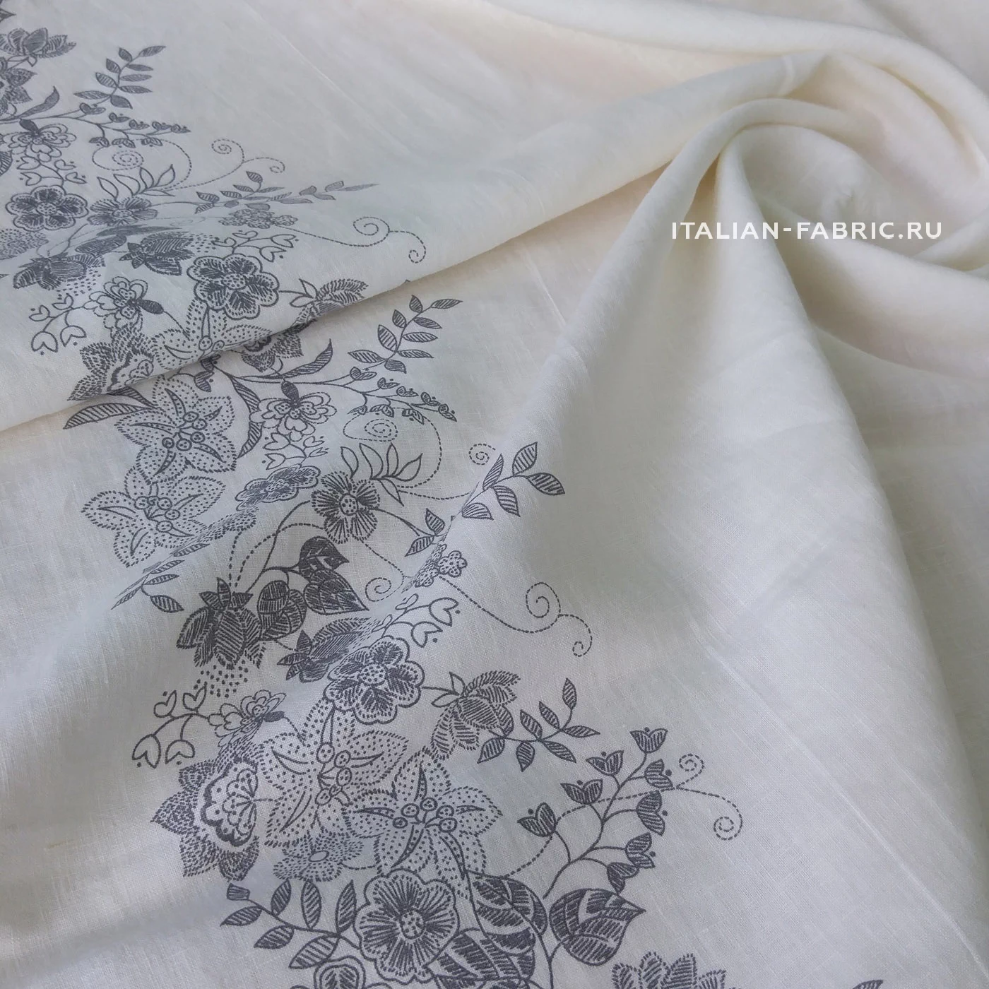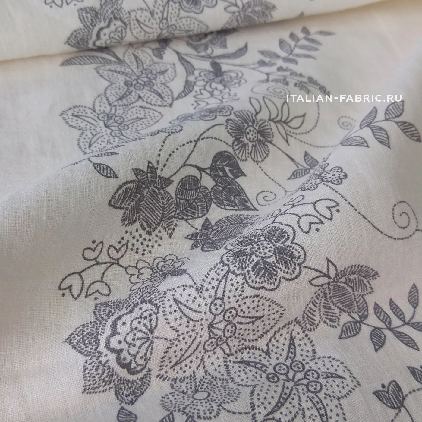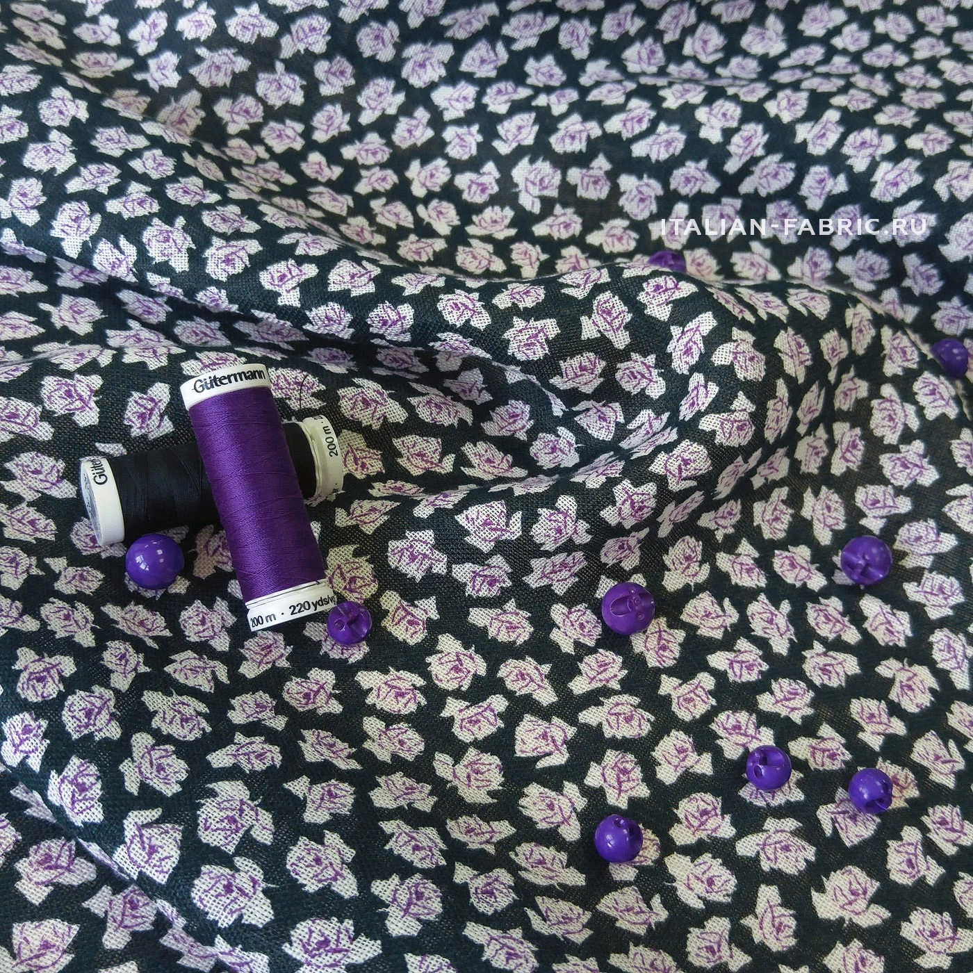 Шикарного качества плательно-блузочный лён из Италии. Мелкие белые цветочки с фиолетовыми прожилками на глубоком черно-зеленом фоне. Подходит для топов, блуз, туник, сарафанов и платьев.