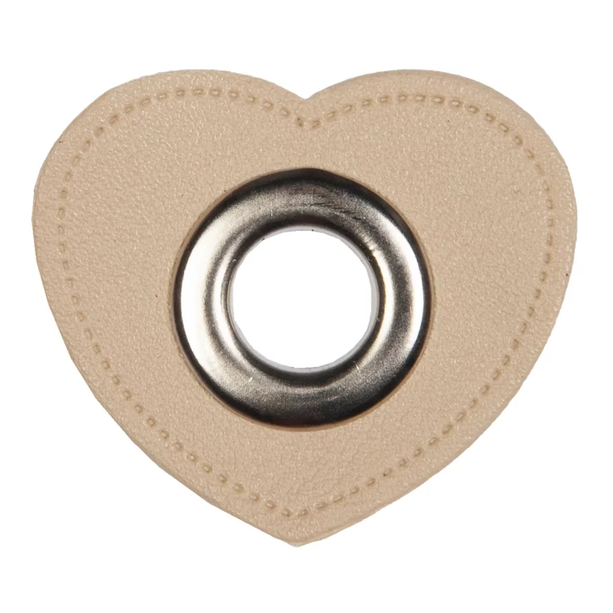 Люверс пришивной на патче HKM "Сердце", 3,5х4см, 2шт., цв. бежевый, арт. 1202/42
