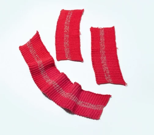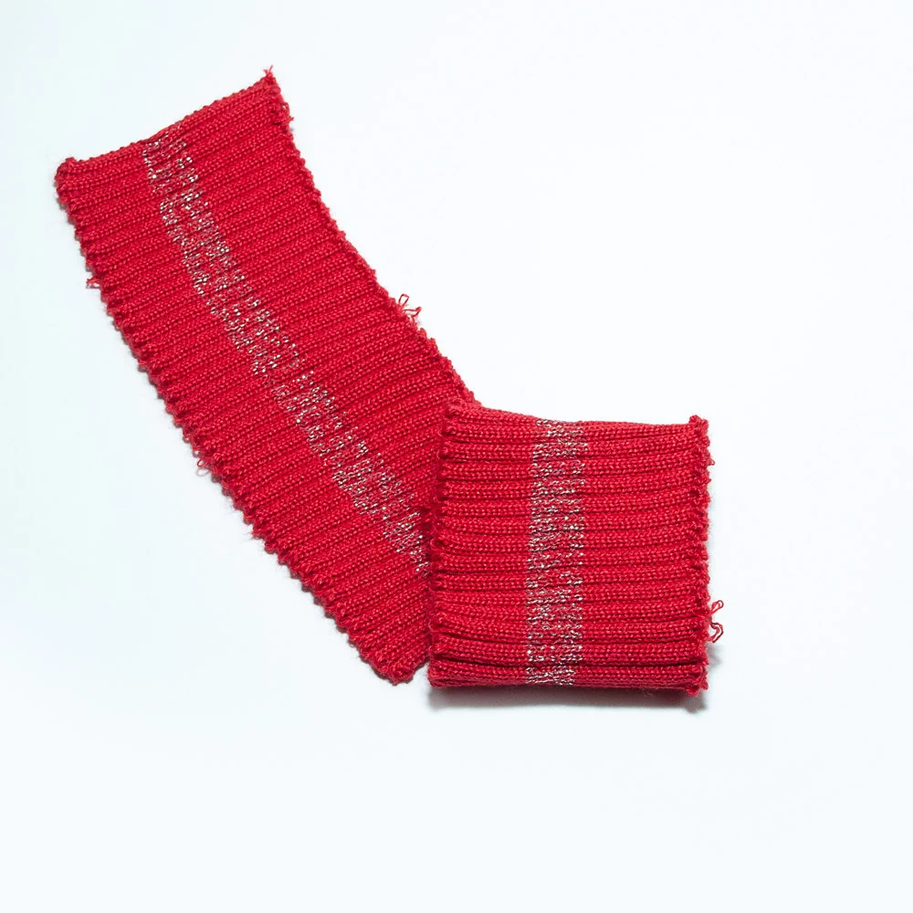 Манжеты трикотаж с полоской, цвет красный/серебряный меланж
