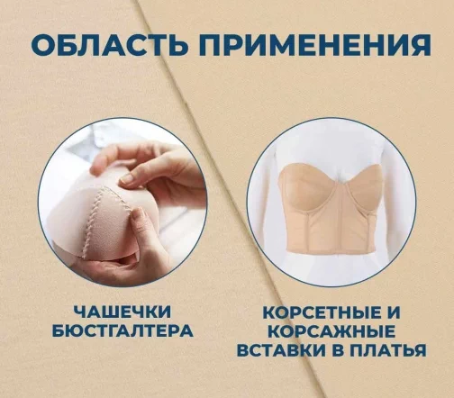 Бельевой поролон с ламинированным покрытием. Этот материал используют для создания чашечек бюстгальтера, а также корсетных и корсажных вставок в платья. Мягкий внутренний слой из вспененного полиуретана обеспечивает комфортное ношение и дополнительный объем. Изнаночная сторона изготовлена из 100% хлопка, который не раздражает кожу и приятен к телу.