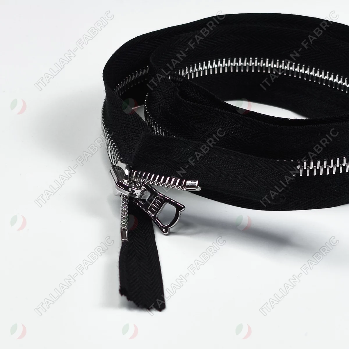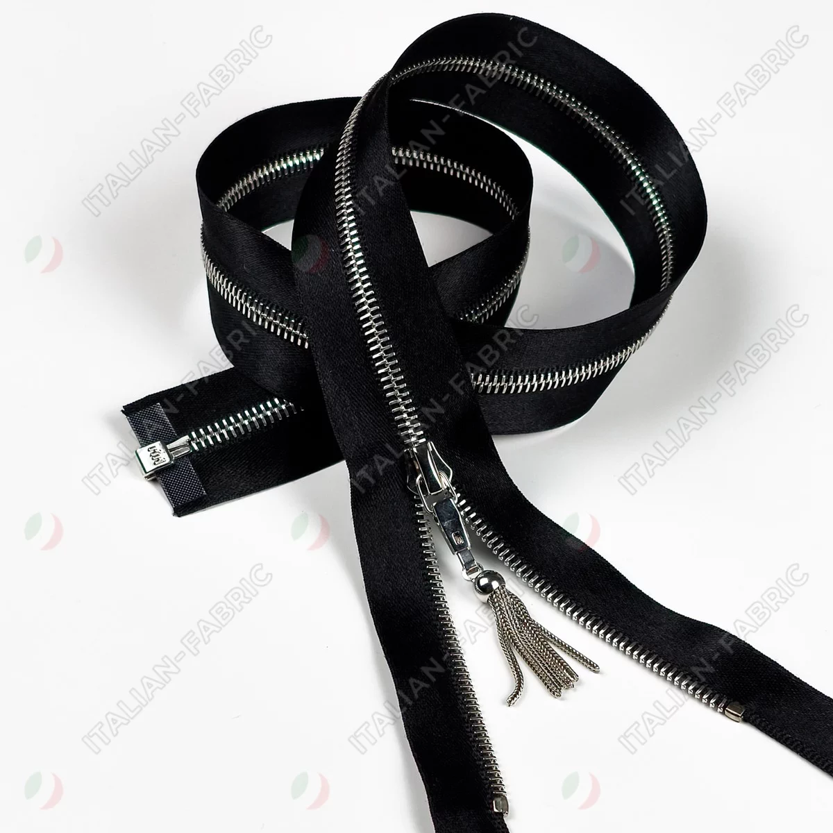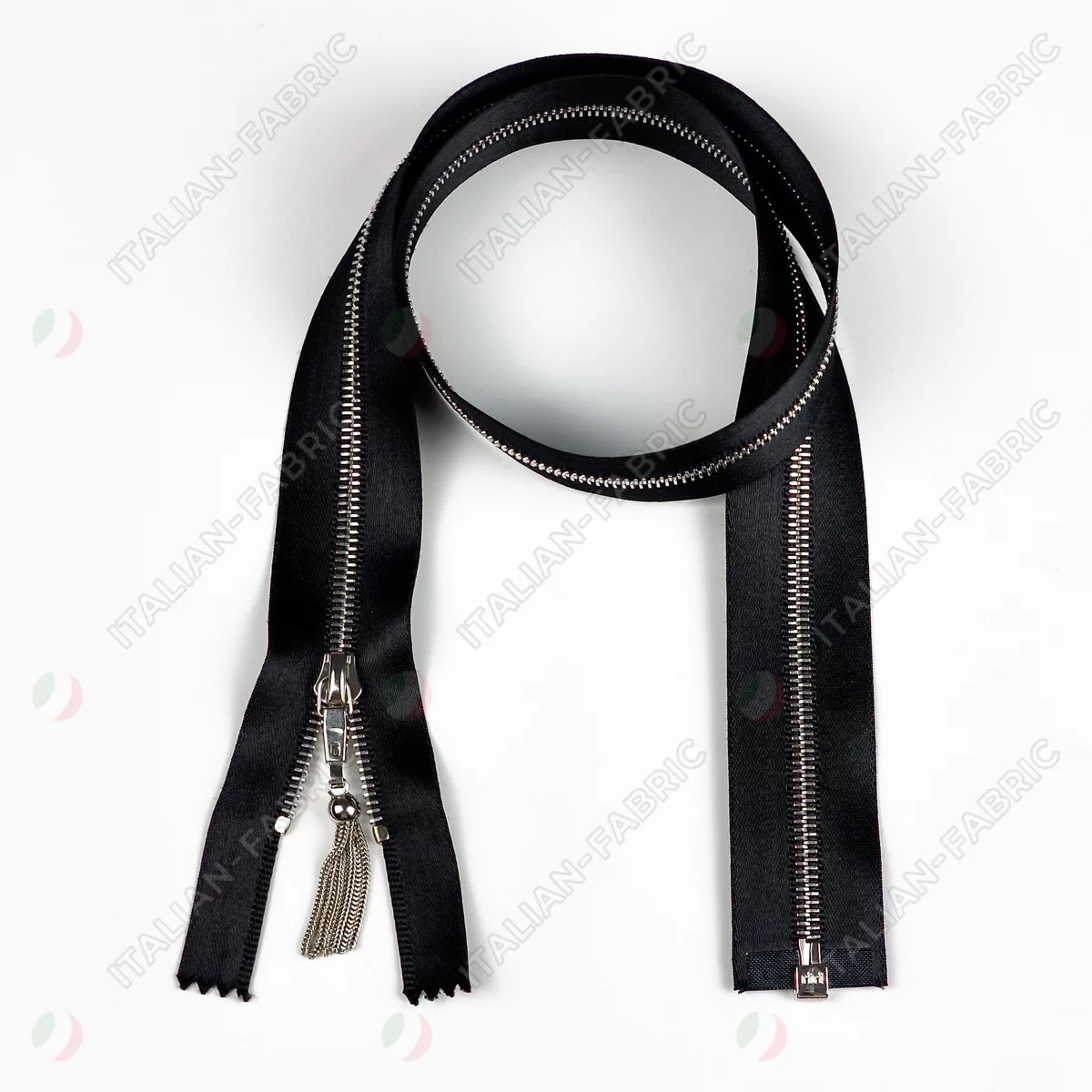 Молния RiRi атласная, металл, разъём, 1 замок 4 мм 60 см, подвеска Zuff, цепь Ni, цвет 2110, черный