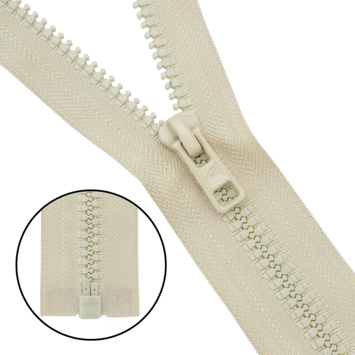 Застежка-молния известного бренда АРТА-Ф произведена в Латвии по швейцарской технологии, на современном оборудовании, из сертифицированных европейских материалов высокого качества. Основные преимущества молний АРТА-Ф: ПРОЧНОСТЬ (литые звенья, монолитный замок), ДОЛГОВЕЧНОСТЬ (выдерживает более 50 тыс. циклов на открывание-закрывание, на концах текстильной ленты имеется прочная двухсторонняя окантовка-сеточка), УДОБСТВО в использовании (благодаря особому строению застежки ткань изделия не попадет в зазор между звеньями и замком), КРАСИВЫЙ ВНЕШНИЙ ВИД благодаря тому, что узел разъема отливается одновременно со звеном и окантовкой в одном цвете. Молния Т6 с шириной звеньев 6 мм предназначена для швейных и галантерейных изделий из плотных материалов: деним, кожа, натуральный или искусственный мех и легкий брезент.