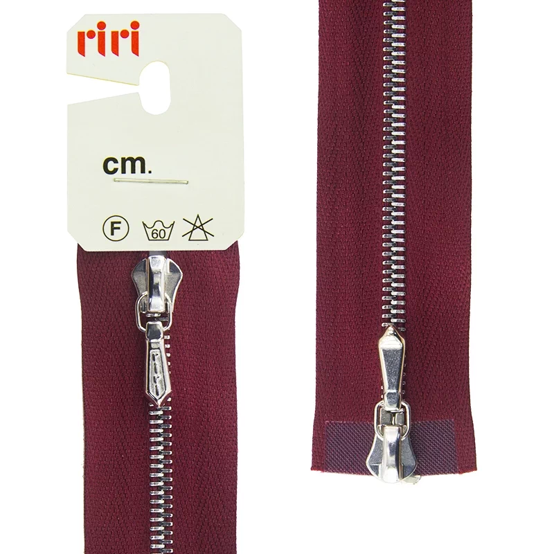 Молния Riri металл, Ni, слайдер Tropf, 4 мм, разъёмная, 2 замка, 80 см, цвет 2411, бордовый