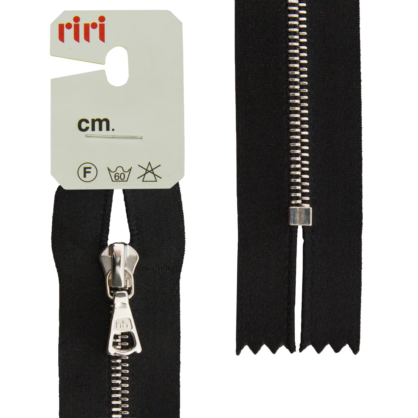 Молния RiRi атласная, металл, неразъёмная, 4 мм 16 см, подвеска Flach, цепь Ni, цвет 2110, черный